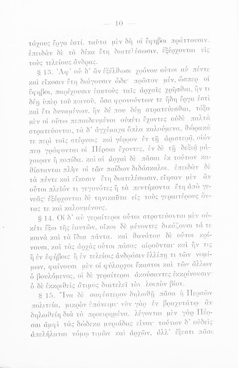 Βαθμίδα εκπαίδευσης: Δευτεροβάθμια Τάξη: Γ' Γυμνασίου Μάθημα: Αρχαία Ελληνικά Γλώσσα: Καθαρεύουσα Παρουσίαση περιεχομένου: Σχολικό εγχειρίδιο Αρχαίων Ελληνικών για την Γ΄ Εξαταξίου Γυμνασίου που περιλαμβάνει εισαγωγή στη ζωή και το έργο του Ξενοφώντα, αποσπάσματα από το Κύρου Παιδεία, ερμηνευτικές σημειώσεις, σκίτσα που απεικονίζουν πολεμικά όπλα της εποχής και χωρογραφικό πίνακα της περιοχής. |