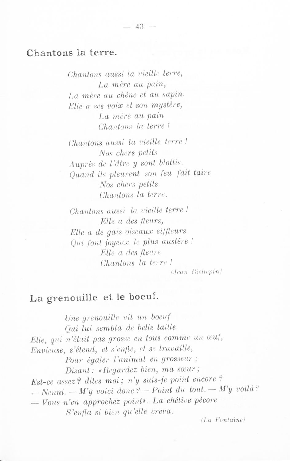 520 ## _aΣχολικό εγχειρίδιο Γαλλικών Γ΄ Γυμνασίου που περιέχει σειρά πεζών και ποιημάτων τα οποία αντλούν τα θέματά τους από εικόνες της υπαίθρου και την οικογενειακή και κοινωνική ζωή. Τα κείμενα συνοδεύουν ασκήσεις γραμματικής και συντακτικού καθώς και λεξιλόγιο.