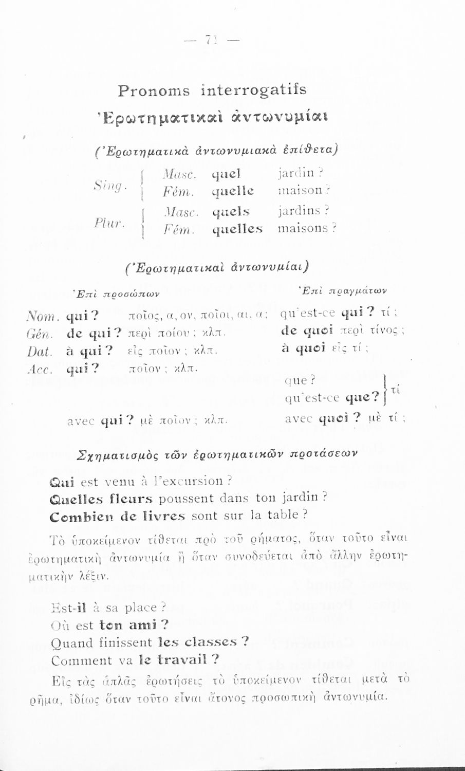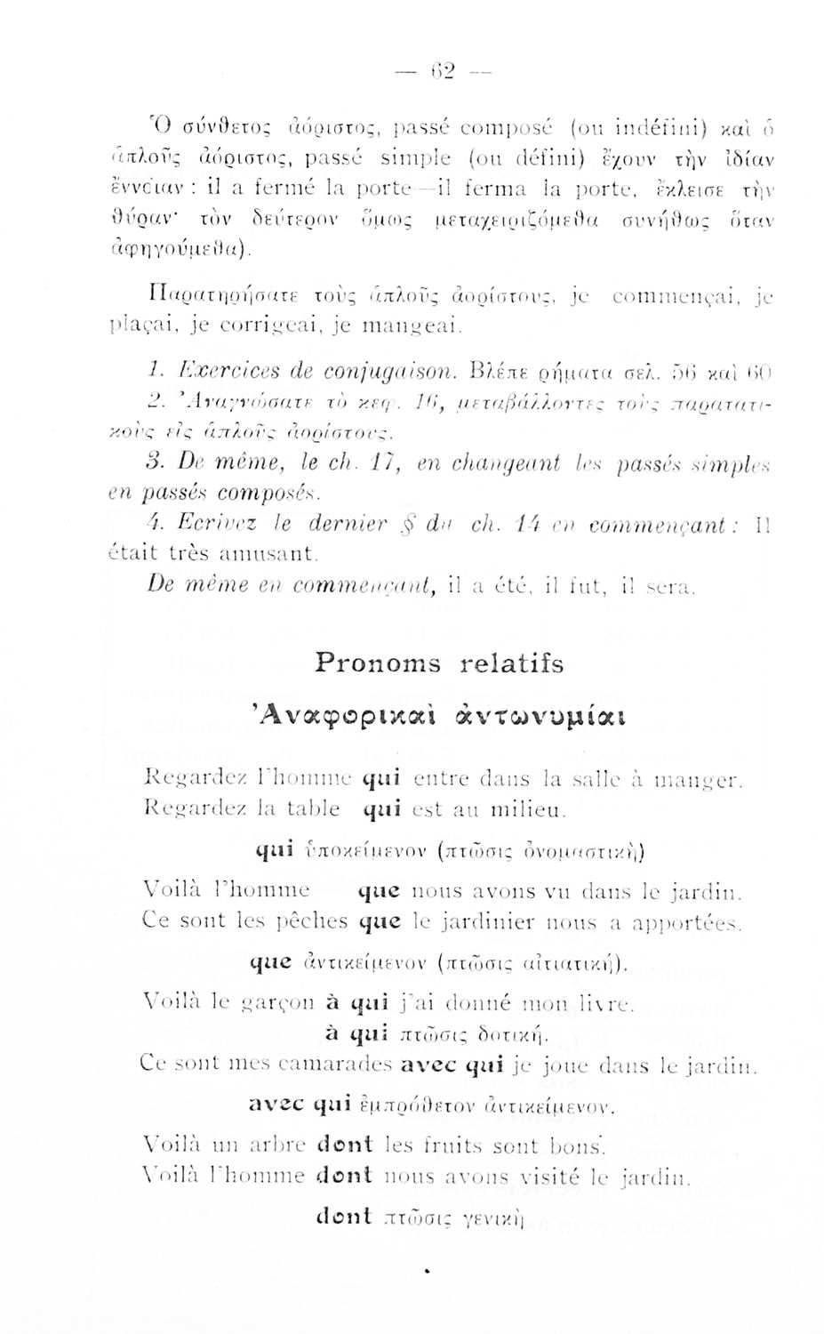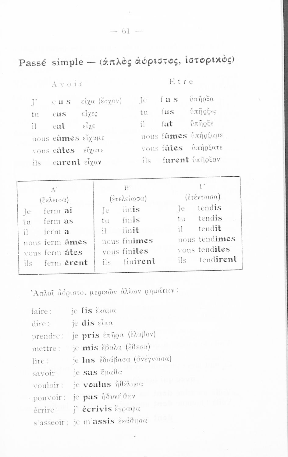 Σχολικό εγχειρίδιο Γαλλικών Γυμνασίου που περιλαμβάνει κείμενα στα γαλλικά και ελληνικά, θεωρία, λεξιλόγιο και βιογραφικά σημειώματα των συγγραφέων. Ο συγγραφέας ήταν καθηγητής της Βαρβακείου πρότυπης σχολής