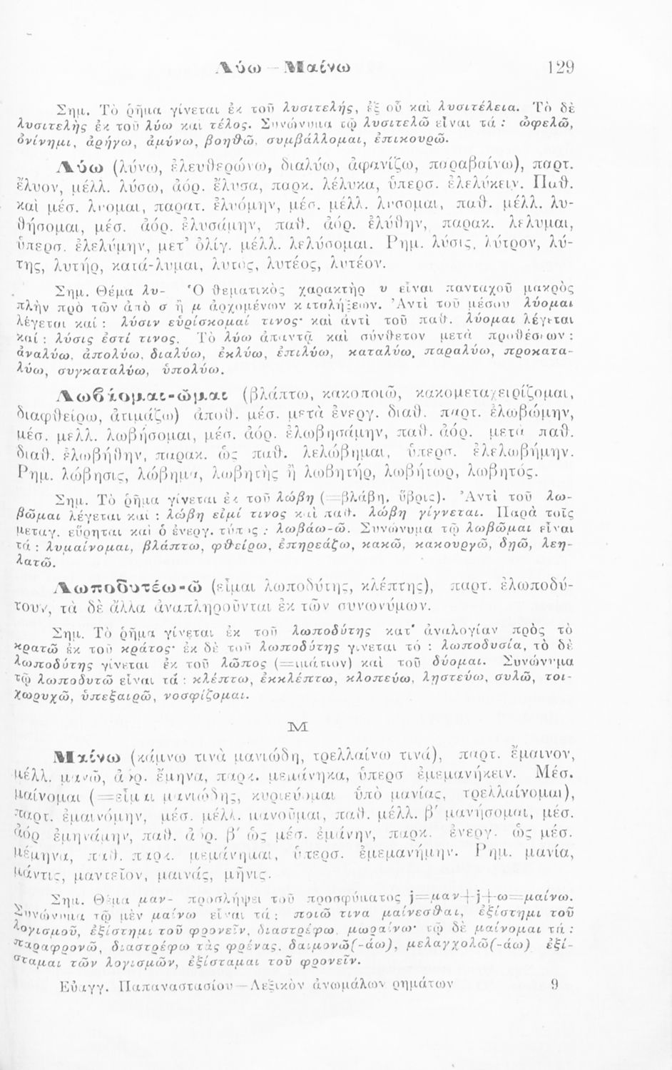 Λεξικόν ανωμάλων ρημάτων της αρχαίας ελληνικής γλώσσης, μετά ποικίλων και πλουσίων γραμματικών, ερμηνευτικών και ετυμολογικών σημειώσεων, προς χρήσιν των μαθητών των Ημιγυμνασίων, Εξαταξίων Γυμνασίων, Αστικών σχολείων, Πρακτικών Λυκείων και Παρθεναγωγείων