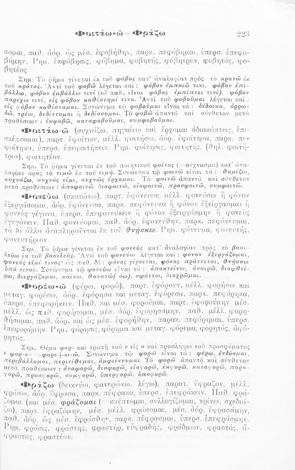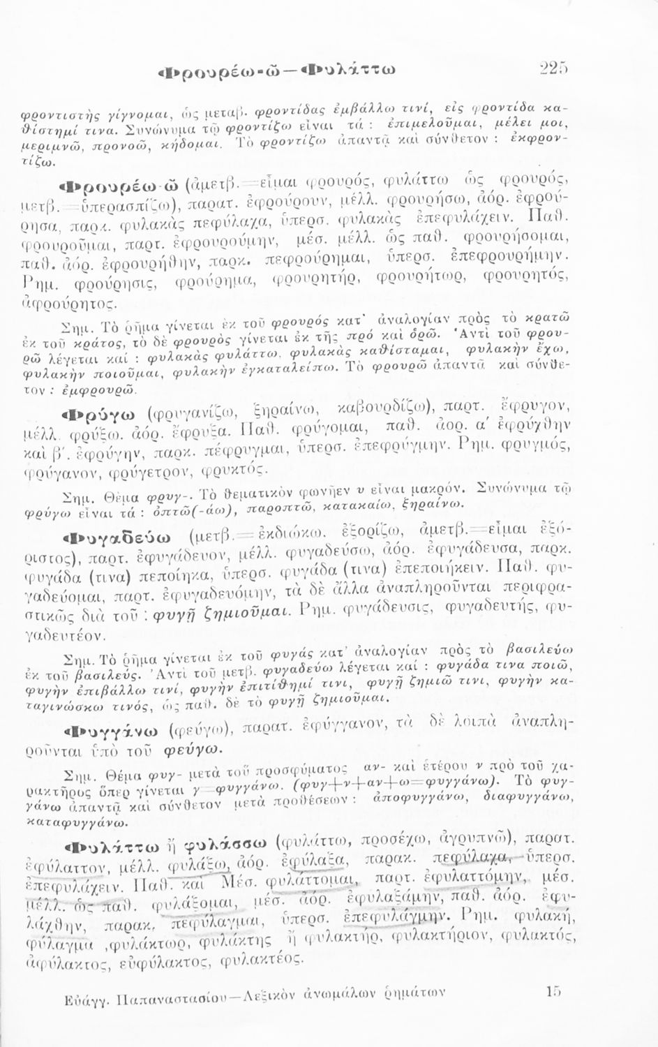 Μαθητικό βοήθημα Αρχαίων Ελληνικών για τους μαθητές των Ημιγυμνασίων, Παρθεναγωγείων, Αστικών σχολείων και Παρθεναγωγείων που περιλαμβάνει κατάλογο ανωμάλων ρημάτων και σειρά σημειώσεων και ασκήσεων για πρακτική εξάσκηση.