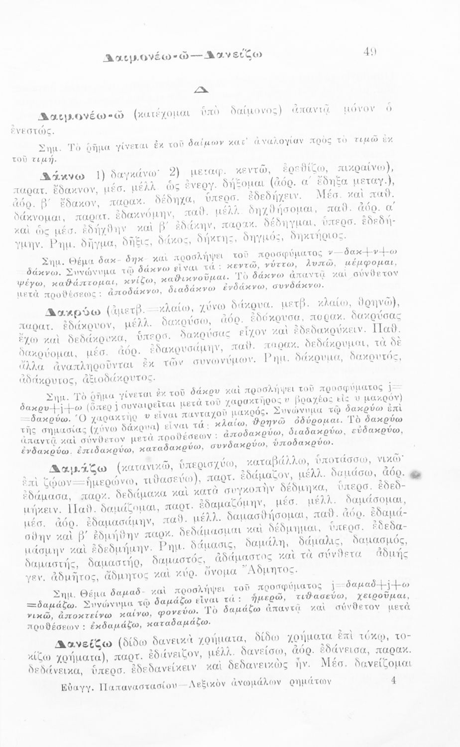 Λεξικόν ανωμάλων ρημάτων της αρχαίας ελληνικής γλώσσης, μετά ποικίλων και πλουσίων γραμματικών, ερμηνευτικών και ετυμολογικών σημειώσεων, προς χρήσιν των μαθητών των Ημιγυμνασίων, Εξαταξίων Γυμνασίων, Αστικών σχολείων, Πρακτικών Λυκείων και Παρθεναγωγείων