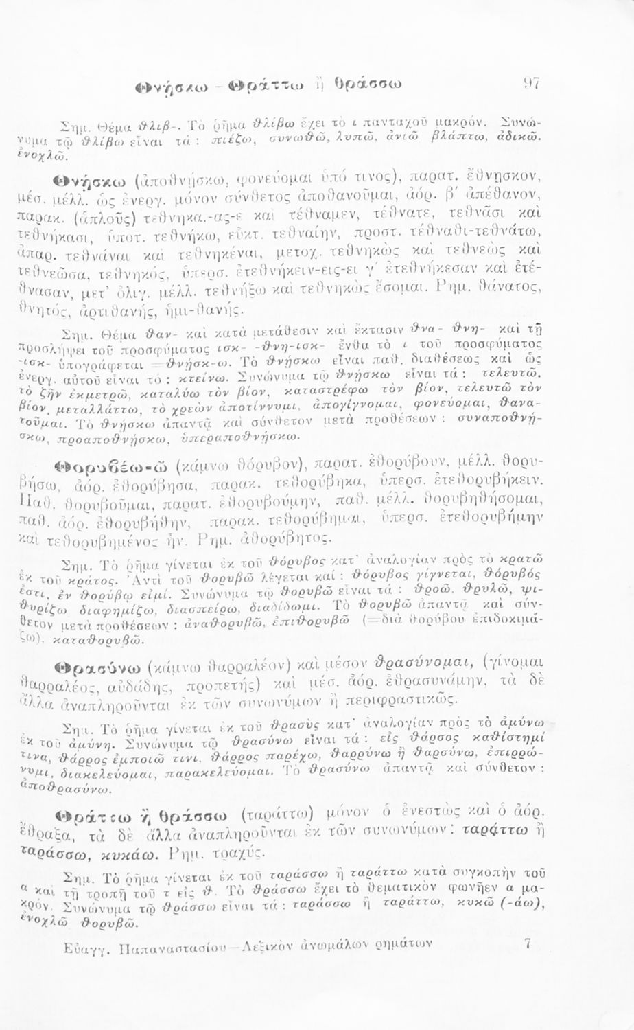 Μαθητικό βοήθημα Αρχαίων Ελληνικών για τους μαθητές των Ημιγυμνασίων, Παρθεναγωγείων, Αστικών σχολείων και Παρθεναγωγείων που περιλαμβάνει κατάλογο ανωμάλων ρημάτων και σειρά σημειώσεων και ασκήσεων για πρακτική εξάσκηση.
