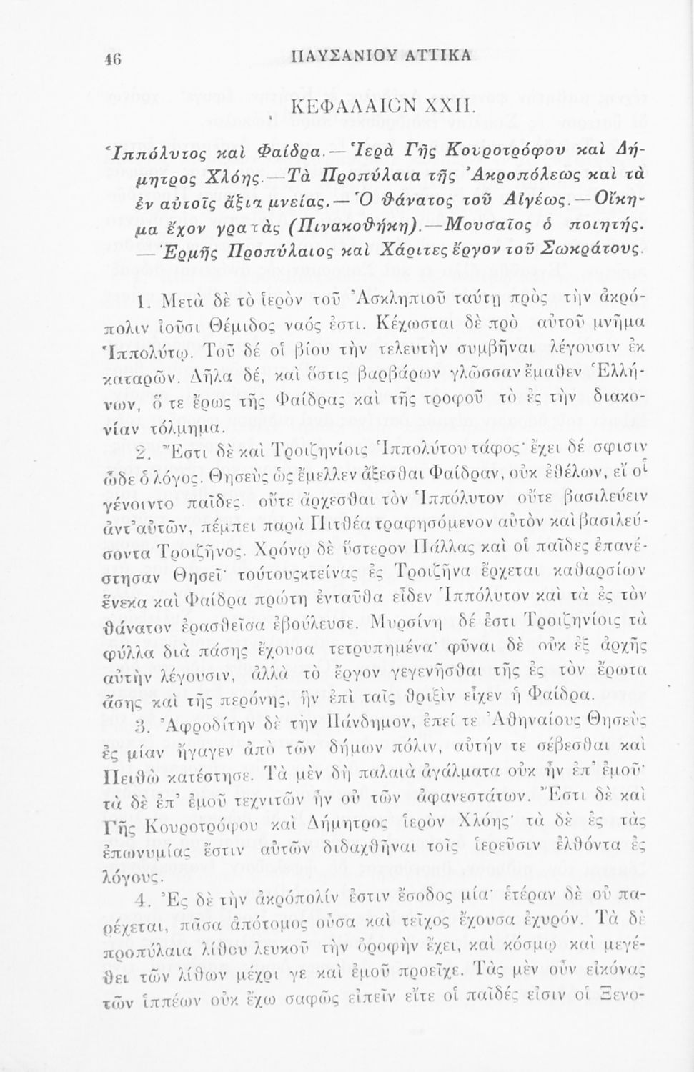 Παυσανίου Ελλάδος περιήγησις, βιβλίον πρώτον, αττικά, μετά εισαγωγής περί του Παυσανίου και του έργου αυτού και περιλήψεων των κεφαλαίων
