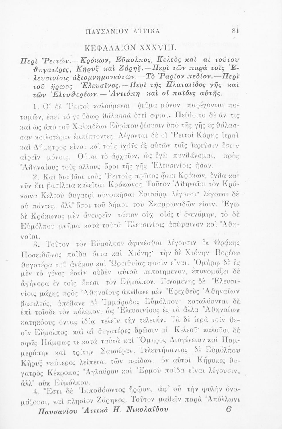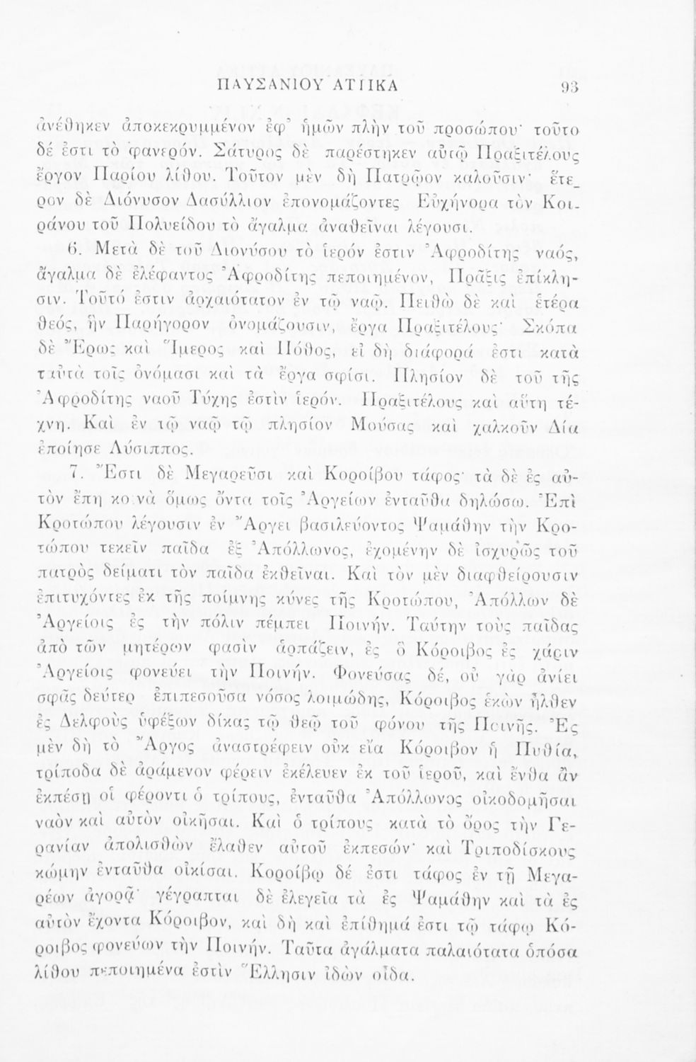 Σχολικό εγχειρίδιο Αρχαίων Ελληνικών της ΣΤ΄ Γυμνασίου το οποίο περιλαμβάνει αποσπάσματα από το έργο του Παυσανία. Το βιβλίο ξεκινάει με μια εισαγωγή για το έργο και τη ζωή του Παυσανία και συνεχίζει παραθέτοντας το ίδιο το έργο του συγγραφέα.