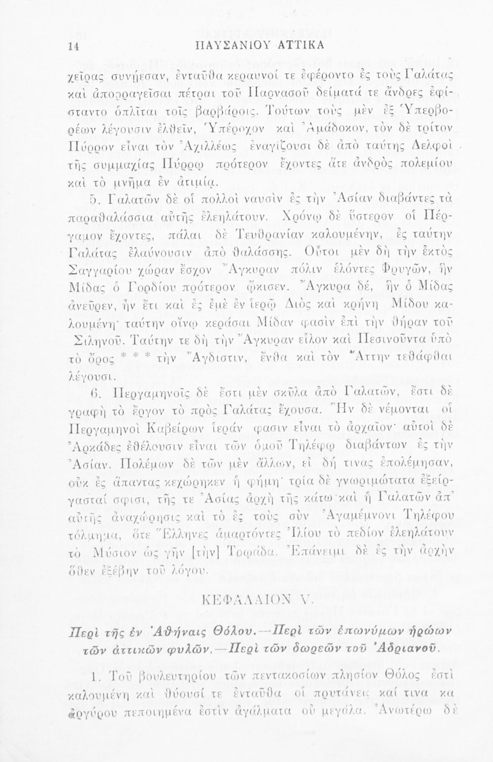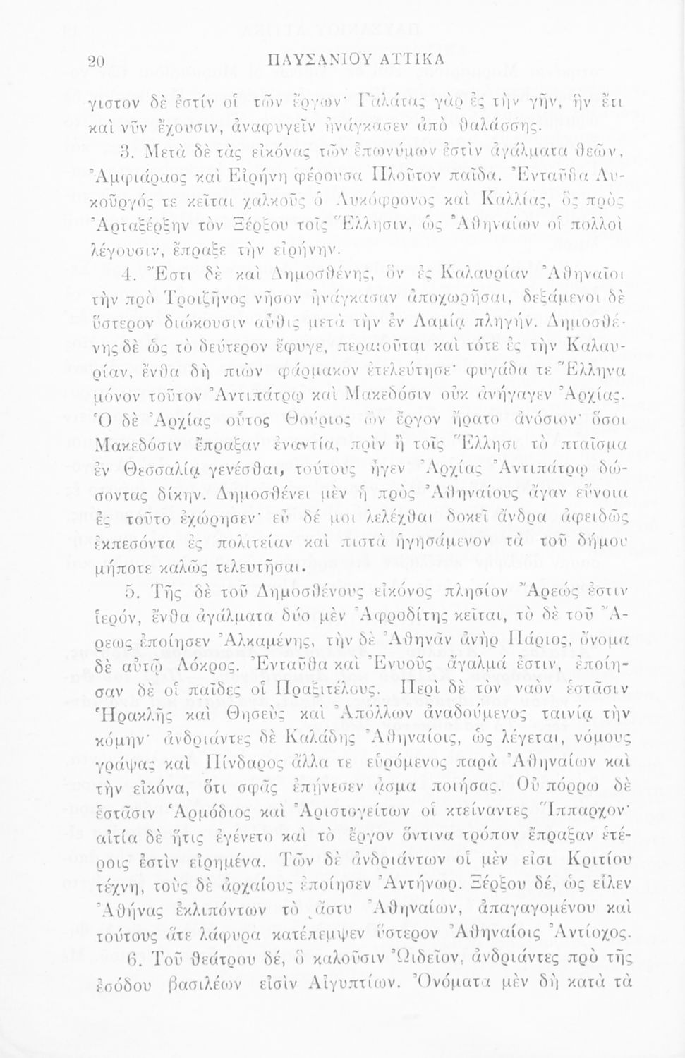 Σχολικό εγχειρίδιο Αρχαίων Ελληνικών της ΣΤ΄ Γυμνασίου το οποίο περιλαμβάνει αποσπάσματα από το έργο του Παυσανία. Το βιβλίο ξεκινάει με μια εισαγωγή για το έργο και τη ζωή του Παυσανία και συνεχίζει παραθέτοντας το ίδιο το έργο του συγγραφέα.