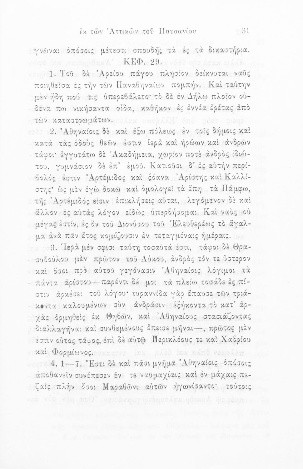 Σχολικό εγχειρίδιο Αρχαίων Ελληνικών Δ΄ Γυμνασίου που περιλαμβάνει αποσπάσματα από τα Αττικά του Παυσανία, εισαγωγή στη ζωή και το έργο του, και ερμηνευτικά και πραγματολογικά σχόλια.