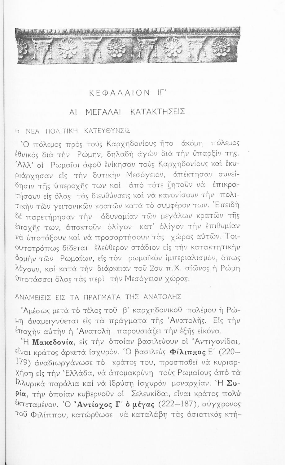 Σχολικό εγχειρίδιο Ιστορίας Β΄ Γυμνασίου που καλύπτει την περίοδο από την κατάρρευση της Μακεδονικής Ηγεμονίας μέχρι τα χρόνια του Μ. Κωνσταντίνου και του Θεοδοσίου του Μεγάλου. Περιέχει χρονολογικό πίνακα των