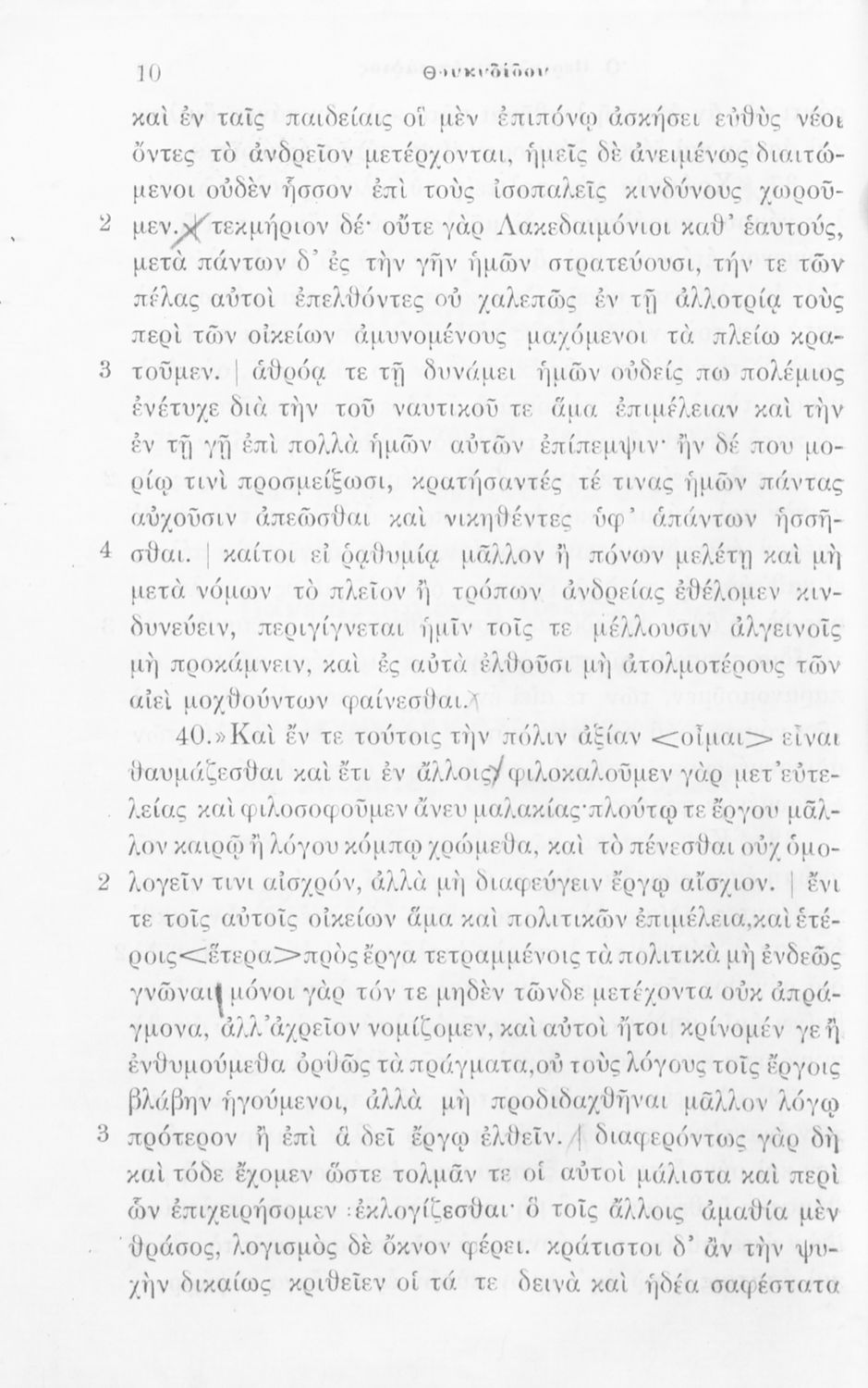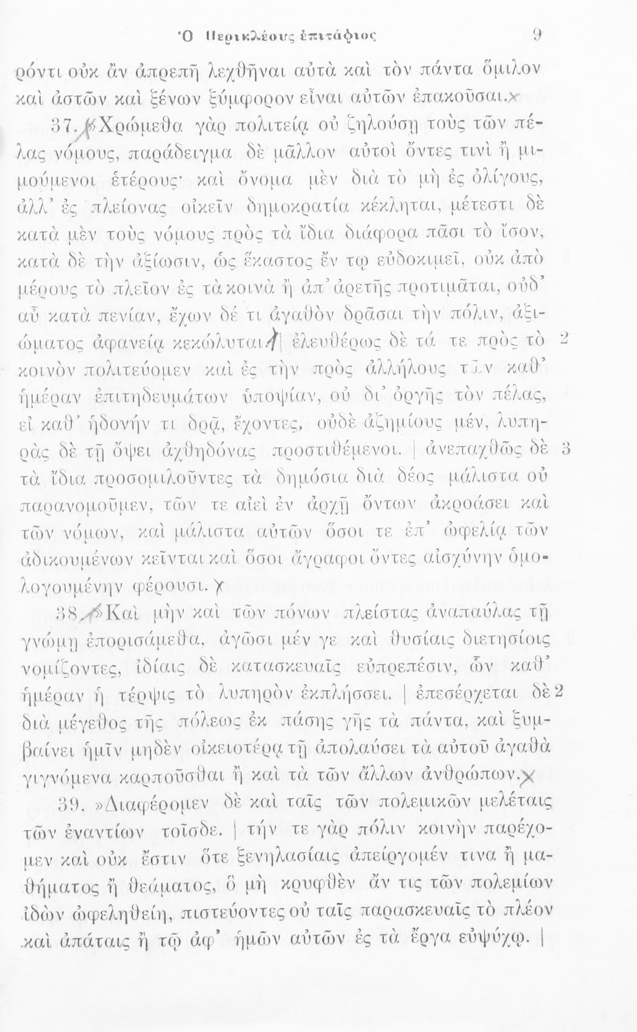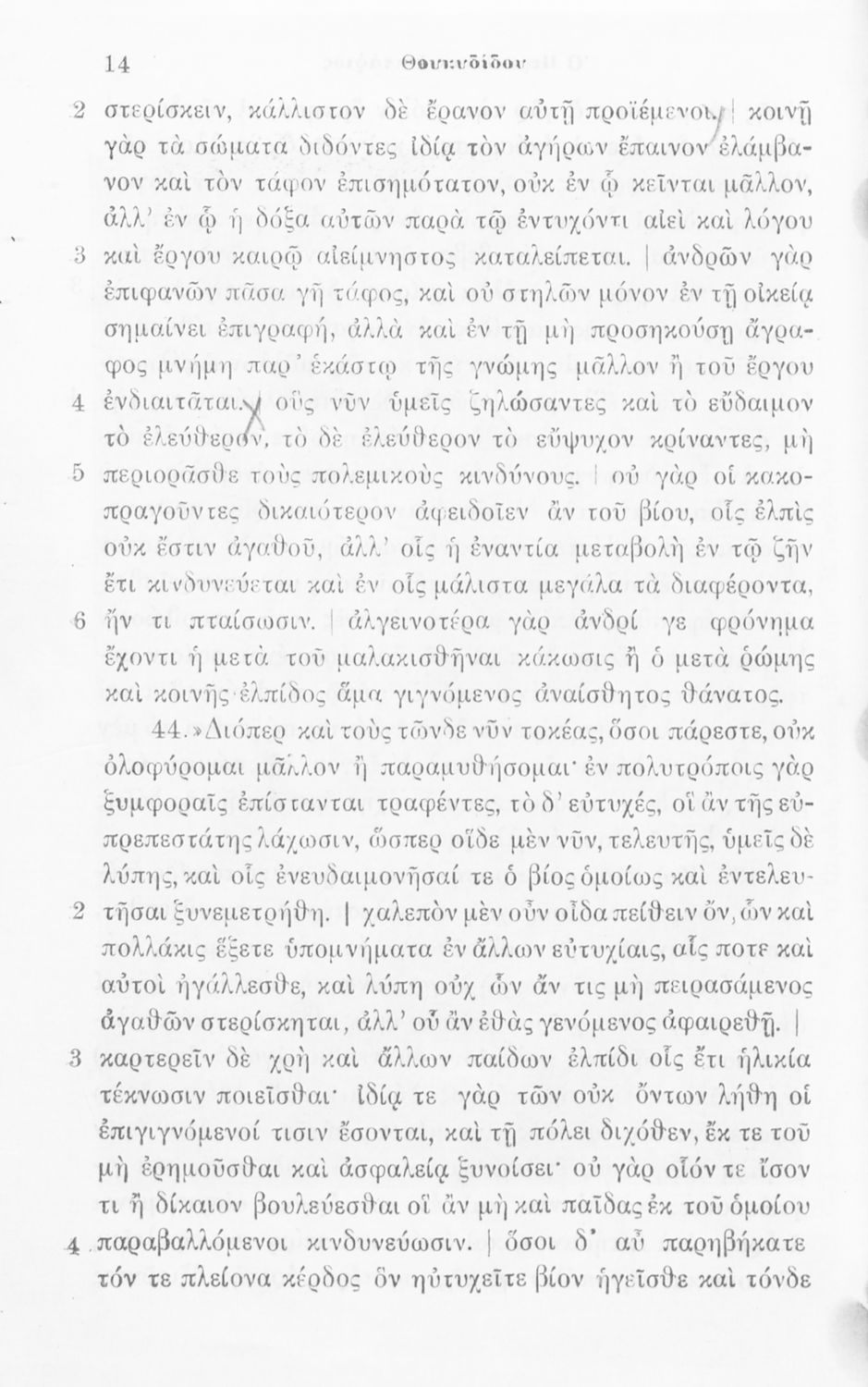 Μαθητικό βοήθημα Αρχαίων Ελληνικών που περιλαμβάνει αποσπάσματα από το έργο του Θουκυδίδη Περικλέους Επιτάφιος σε μετάφραση.