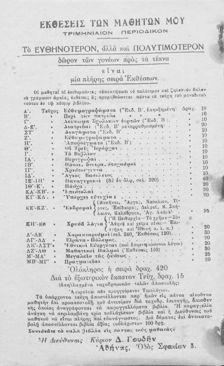 Εκδότης: Π. Δ. Κυριακού Έτος έκδοσης: 1934 Τόπος έκδοσης: Αθήνα Έκδοση: 3η |