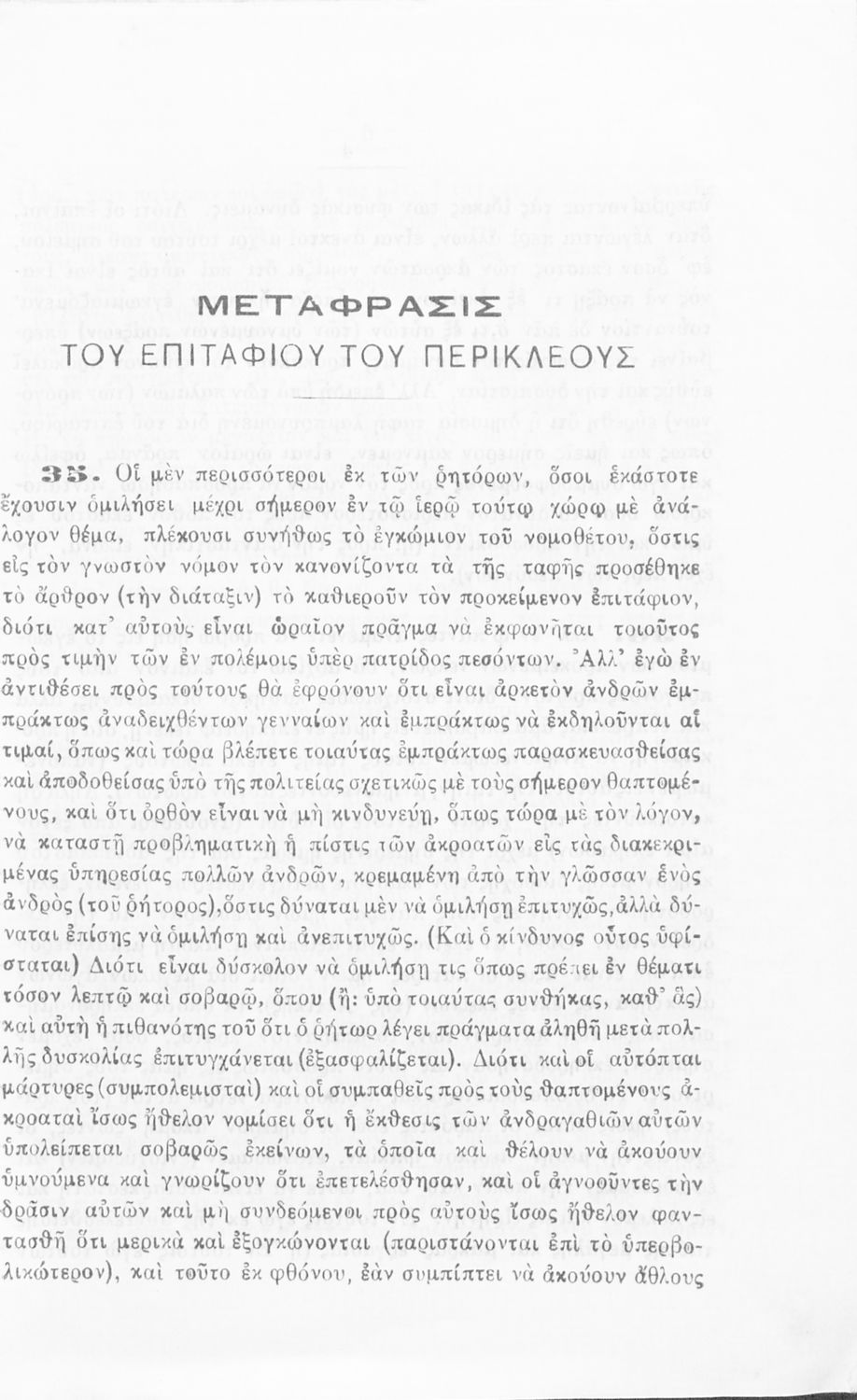 Μαθητικό βοήθημα Αρχαίων Ελληνικών που περιλαμβάνει αποσπάσματα από το έργο του Θουκυδίδη Περικλέους Επιτάφιος σε μετάφραση.