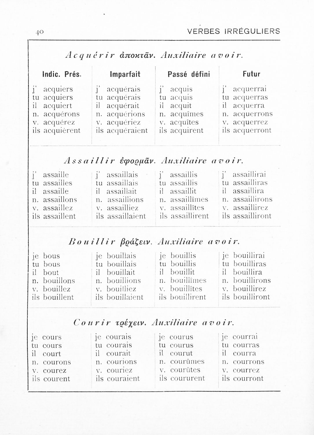 Μαθητικό βοήθημα Γαλλικών για τις τάξεις του Γυμνασίου το οποίο εστιάζει στην κλίση των ρημάτων της γαλλικής γλώσσας.