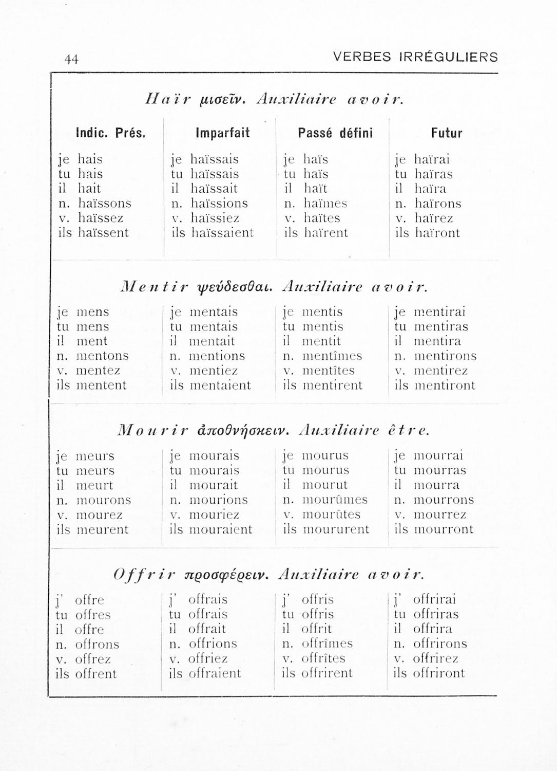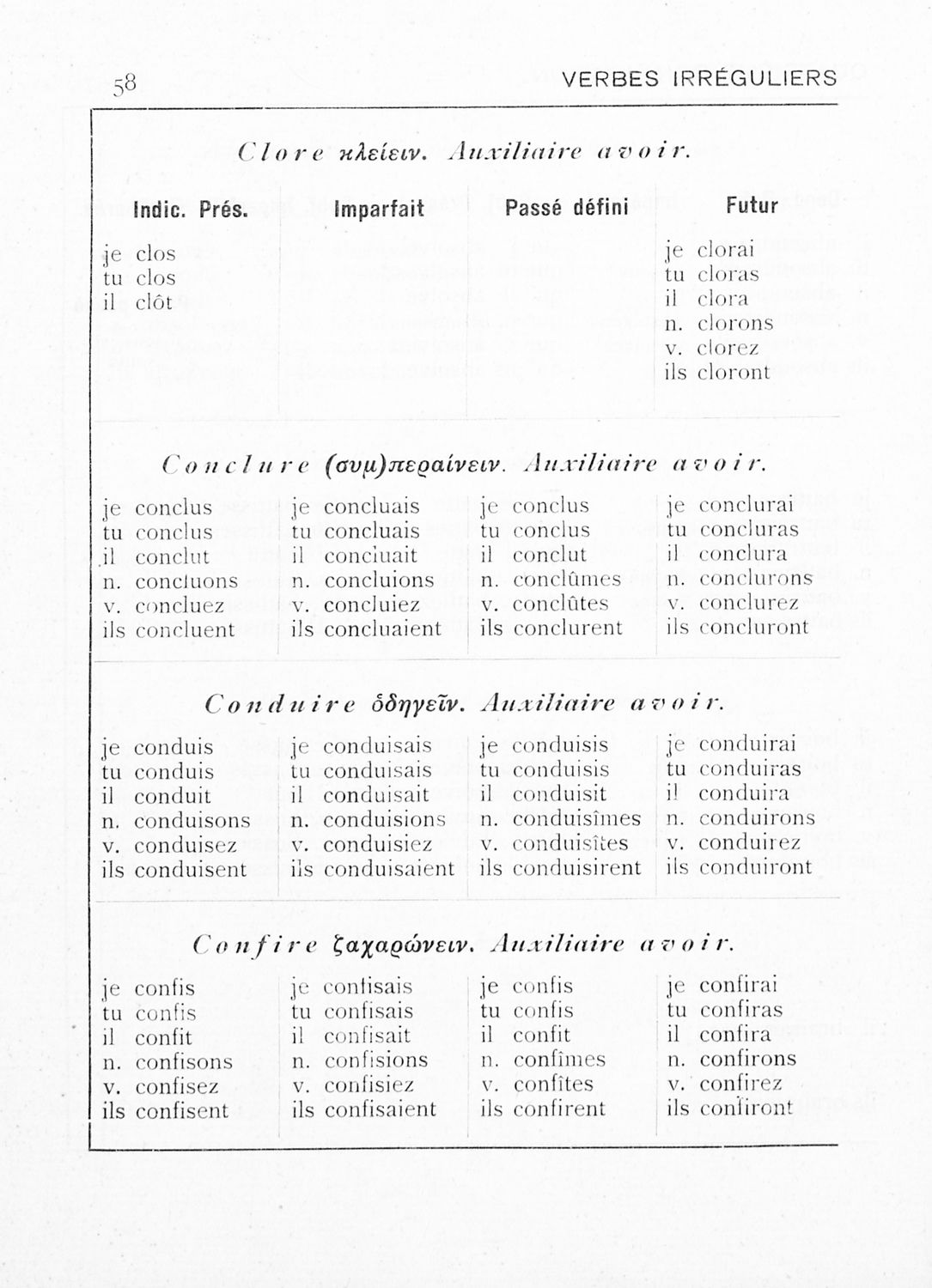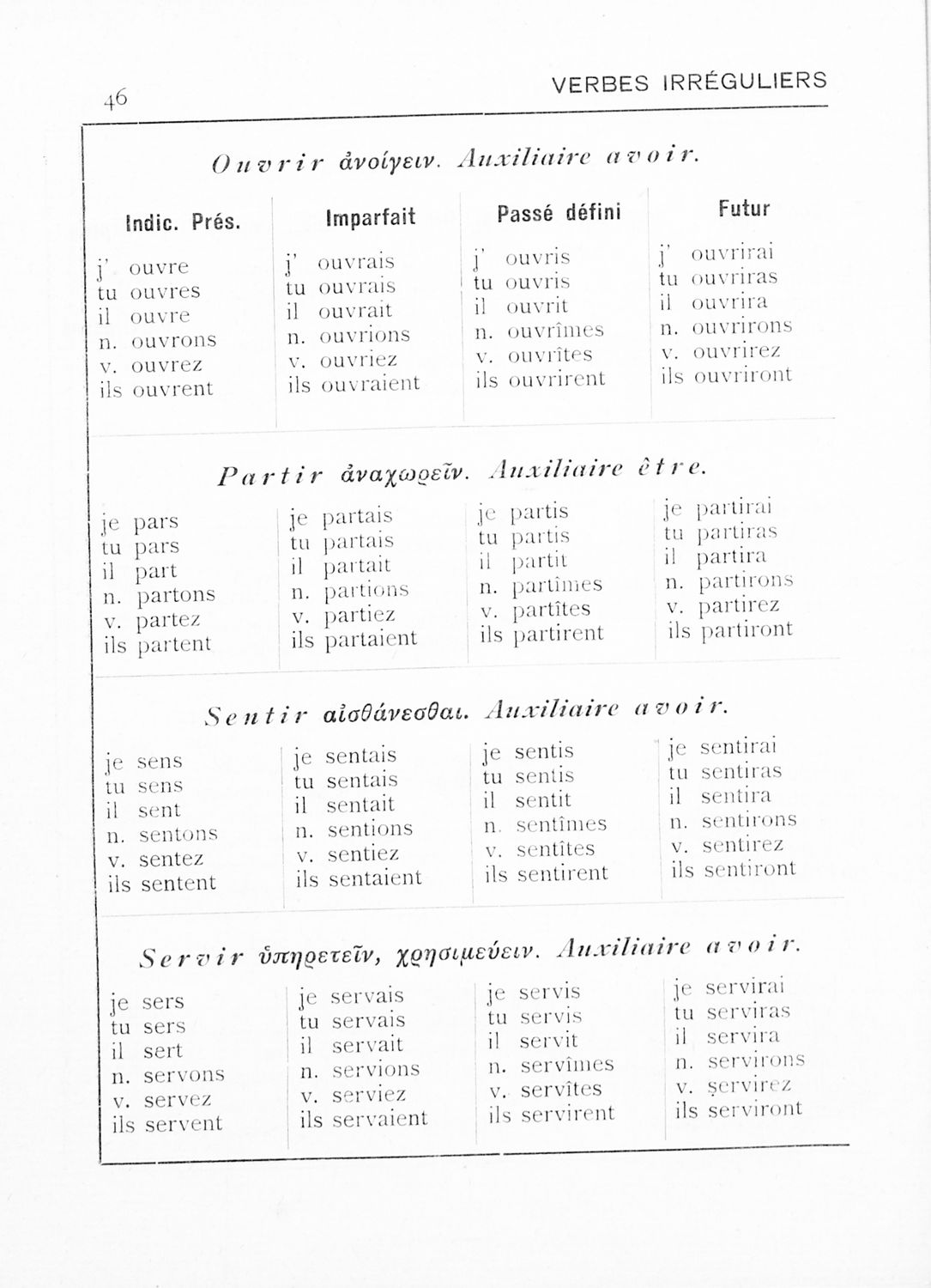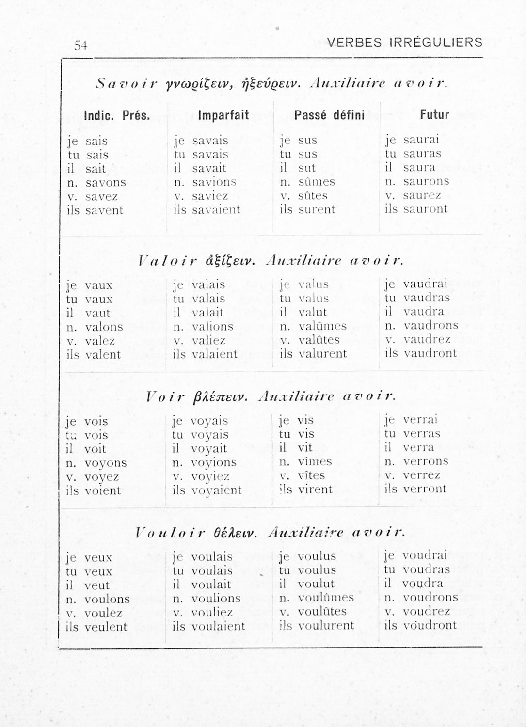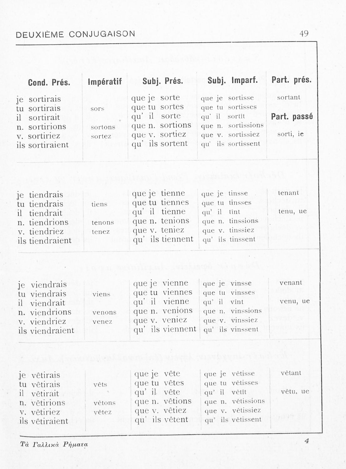 Μαθητικό βοήθημα Γαλλικών για τις τάξεις του Γυμνασίου το οποίο εστιάζει στην κλίση των ρημάτων της γαλλικής γλώσσας.