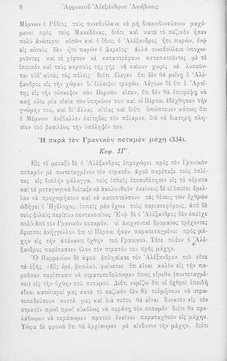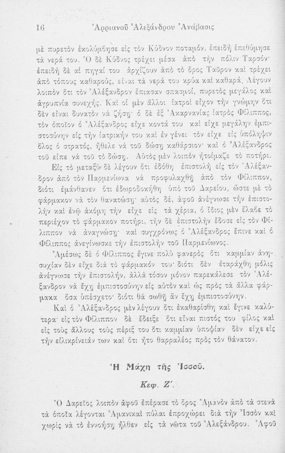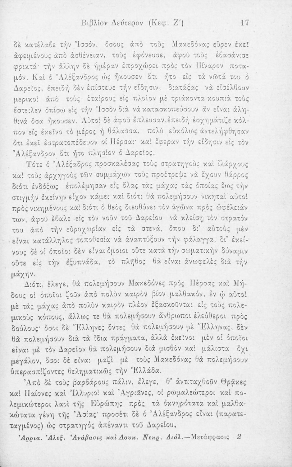 Σχολικό εγχειρίδιο Αρχαίων Ελληνικών Β΄ Γυμνασίου που περιλαμβάνει σύντομο βιογραφικό σημείωμα των Αρριανού και Λουκιανού, εισαγωγή στα έργα, αποσπάσματα από το πρώτο και δεύτερο βιβλίο της Ανάβασης του Αλέξανδρου και του Νεκρικούς Διαλόγους και ετυμολογικές σημειώσεις.