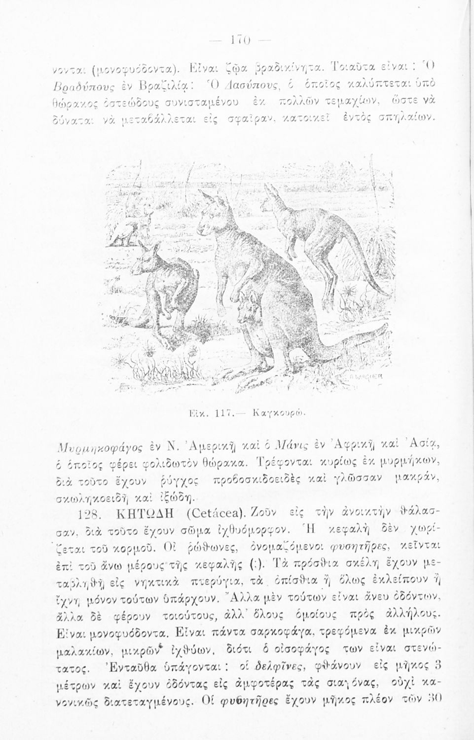 Σχολικό εγχειρίδιο Ζωολογίας που περιγράφει την ανατομική σύσταση των ζώων, τα όργανα κίνησης και το νευρικό σύστημα του ανθρώπου. Στο βιβλίο γίνεται ταξινόμηση των ζώων και παρουσιάζονται τα μονοκύτταρα ζώα, τα μεταζώα, τα μαλάκια, τα χιτωνοφόρα, τα σπονδυλωτά, τα πτηνά και τα θηλαστικά.