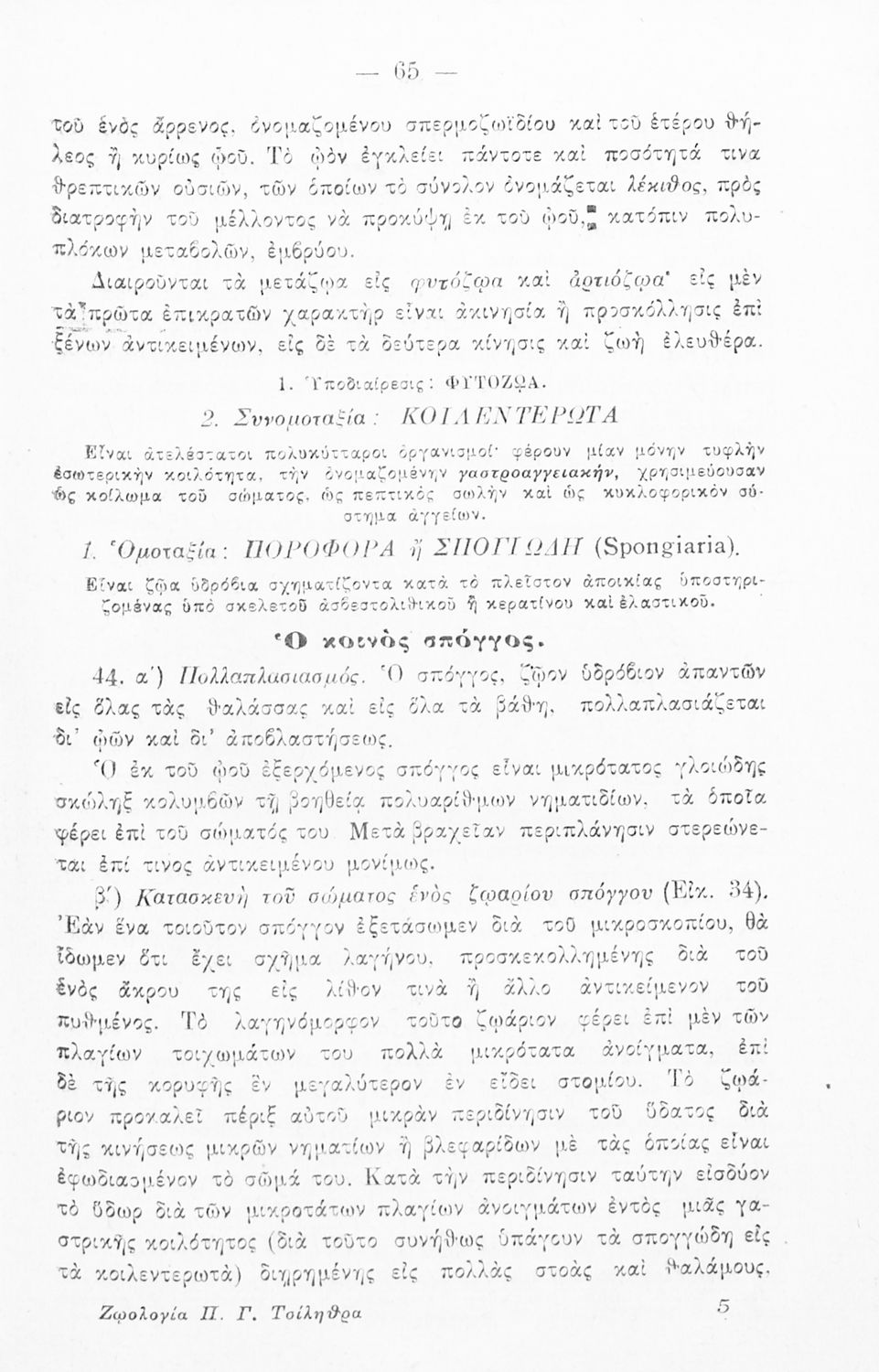 Τίτλος: Στοιχεία Ζωολογίας προς χρήσιν των μαθητών της τρίτης τάξεως των Γυμνασίων και προς αυτομάθειαν. Διασκευασθέντα επί τη βάσει του αναλυτικού προγράμματος 1930