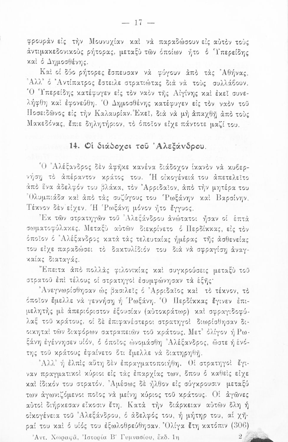 Βαθμίδα εκπαίδευσης: Δευτεροβάθμια Τάξη: Β' Γυμνασίου Μάθημα: Ιστορία Γλώσσα: Καθαρεύουσα Παρουσίαση περιεχομένου: Σχολικό εγχειρίδιο Ιστορίας Β΄ Γυμνασίου που καλύπτει την περίοδο από την κατάρρευση της Μακεδονικής Ηγεμονίας μέχρι τα χρόνια του Μ. Κωνσταντίνου και του Θεοδοσίου του Μεγάλου. Περιέχει χρονολογικό πίνακα των πιο σημαντικών γεγονότων, εικόνες και χάρτες. |