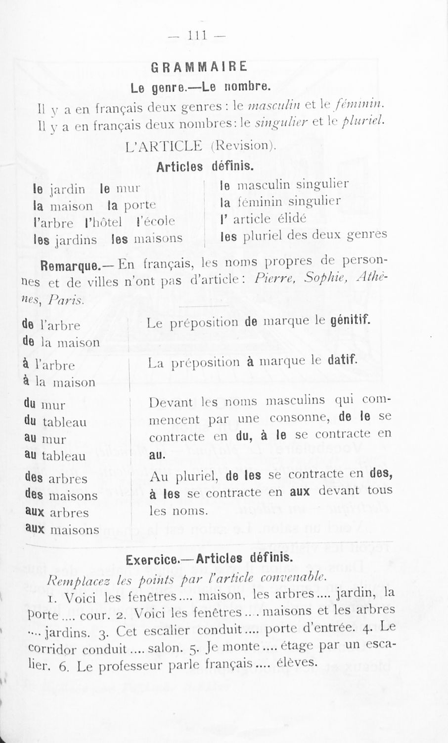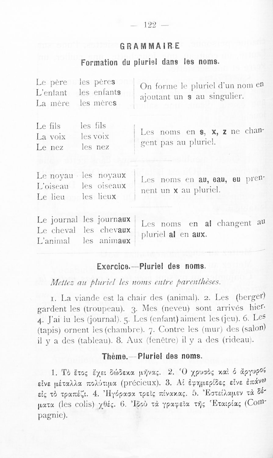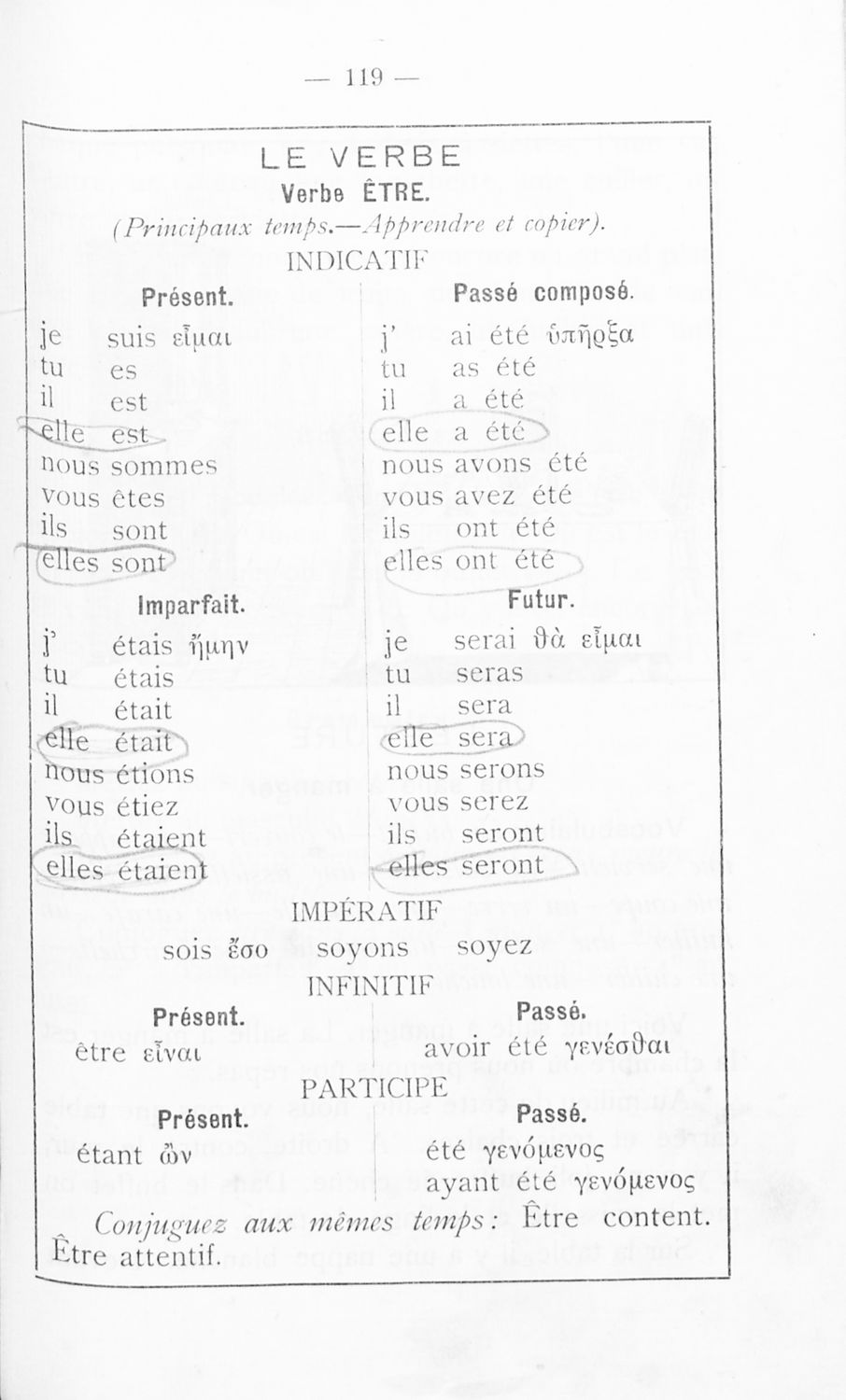 Σχολικό εγχειρίδιο Γαλλικών για τις Εμπορικές Σχολές που περιέχει τους βασικούς κανόνες γραμματικής, συντακτικού και λεξιλογίου, κείμενα που αντλούν τα θέματά τους από την ύπαιθρο και την οικογενειακή και κοινωνική ζωή και κατάλογο λεξιλογίου.
