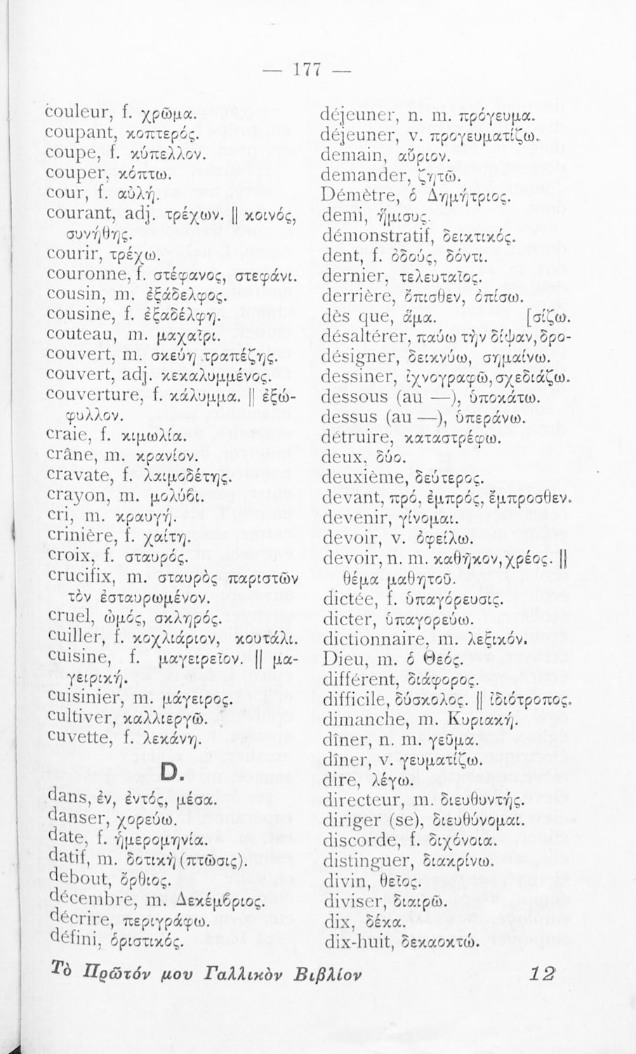Σχολικό εγχειρίδιο Γαλλικών για τοΕλληνικό Σχολείο, το Αστικό Σχολείο, το Παρθεναγωγείο, το Διδασκαλείο και τις Εμπορικές Σχολές που αποτελείται από κείμενα, γραμματική και συντακτικό της γαλλικής γλώσσας και ...