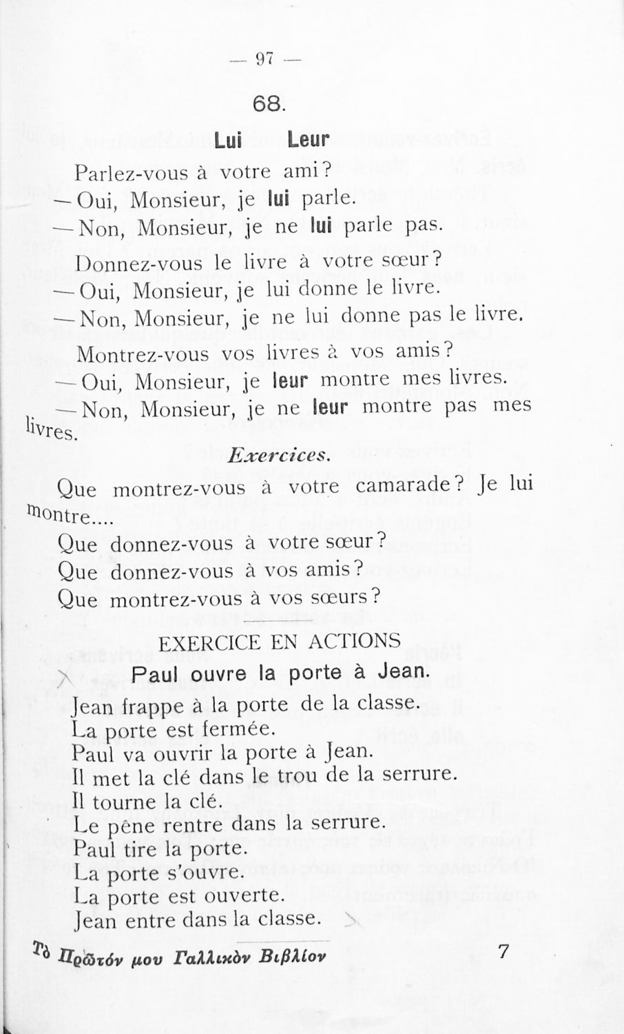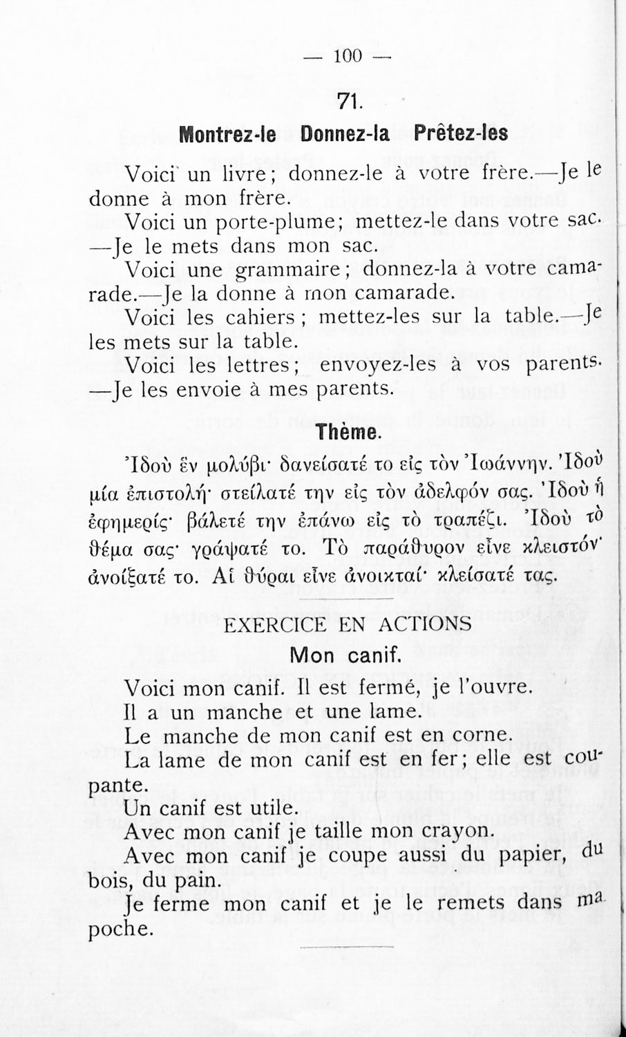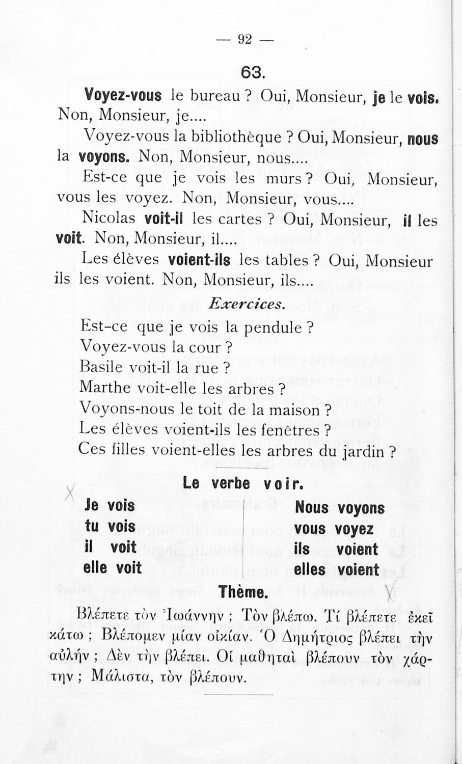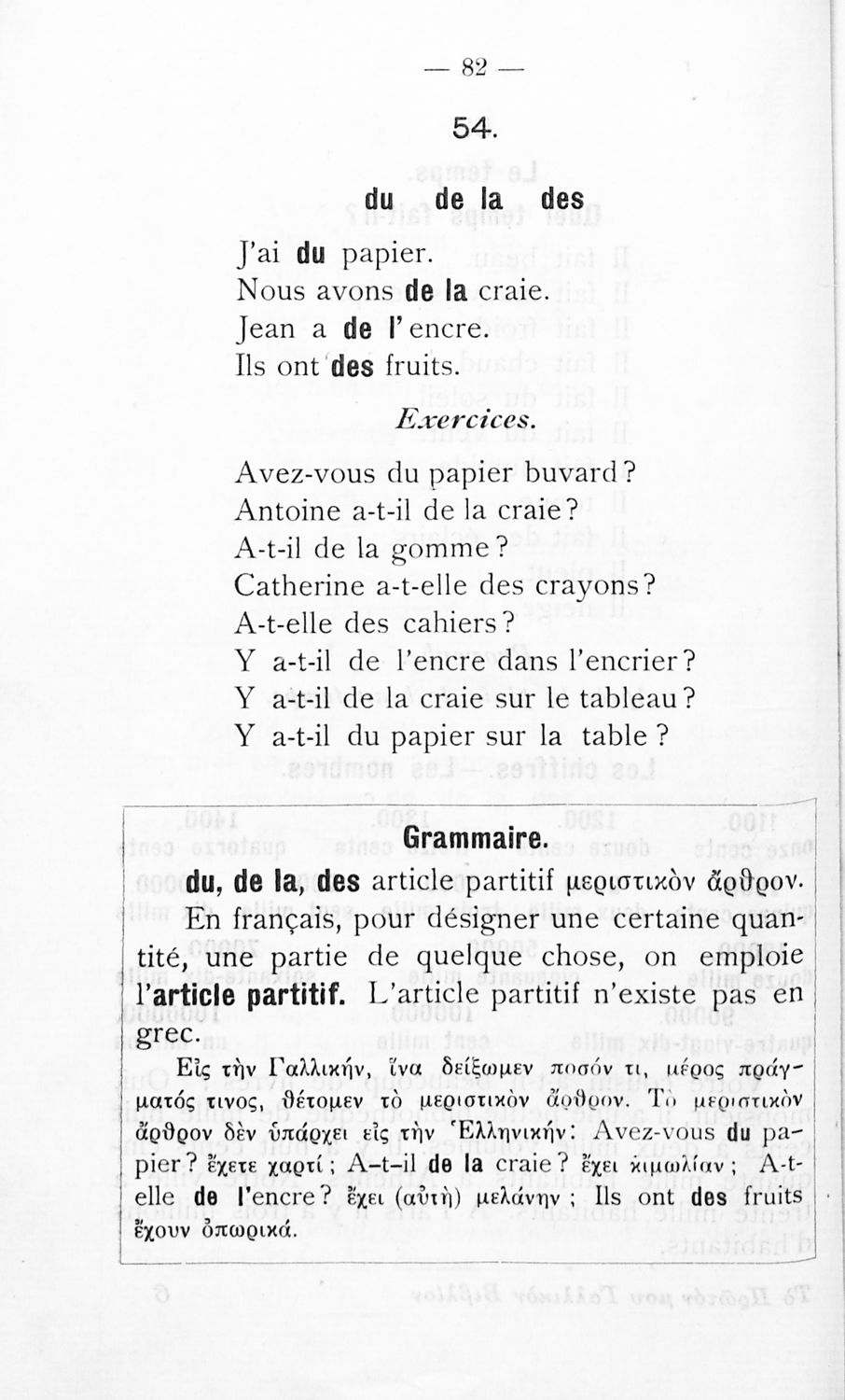 Σχολικό εγχειρίδιο Γαλλικών για τις Εμπορικές Σχολές που περιέχει τους βασικούς κανόνες γραμματικής, συντακτικού και λεξιλογίου, κείμενα που αντλούν τα θέματά τους από την ύπαιθρο και την οικογενειακή και κοινωνική ζωή και κατάλογο λεξιλογίου.