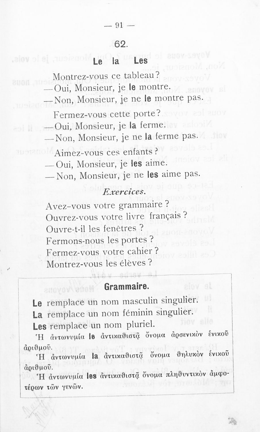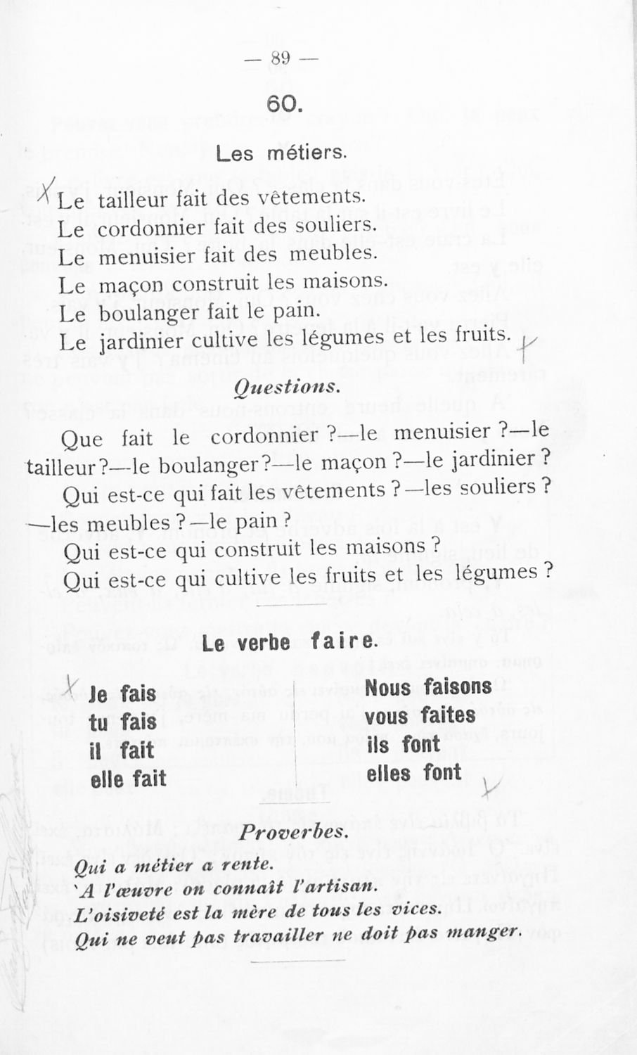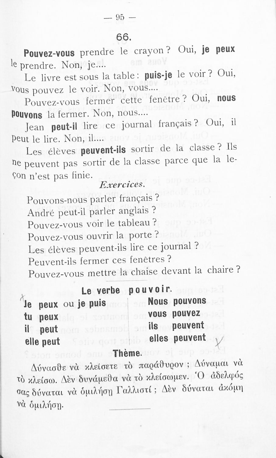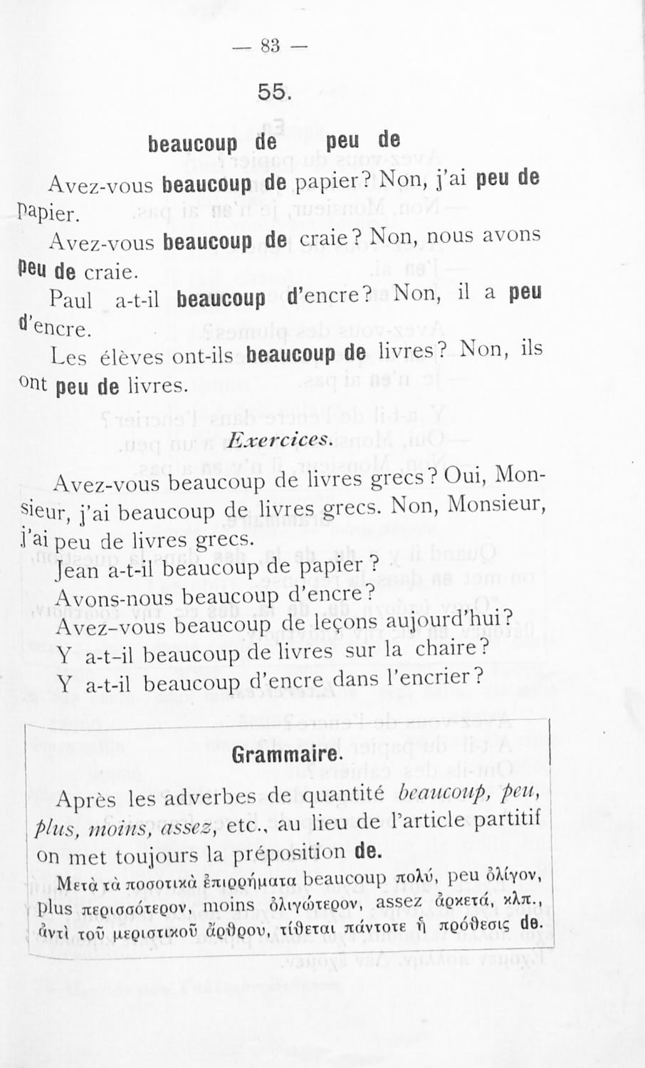 Σχολικό εγχειρίδιο Γαλλικών για τις Εμπορικές Σχολές που περιέχει τους βασικούς κανόνες γραμματικής, συντακτικού και λεξιλογίου, κείμενα που αντλούν τα θέματά τους από την ύπαιθρο και την οικογενειακή και κοινωνική ζωή και κατάλογο λεξιλογίου.