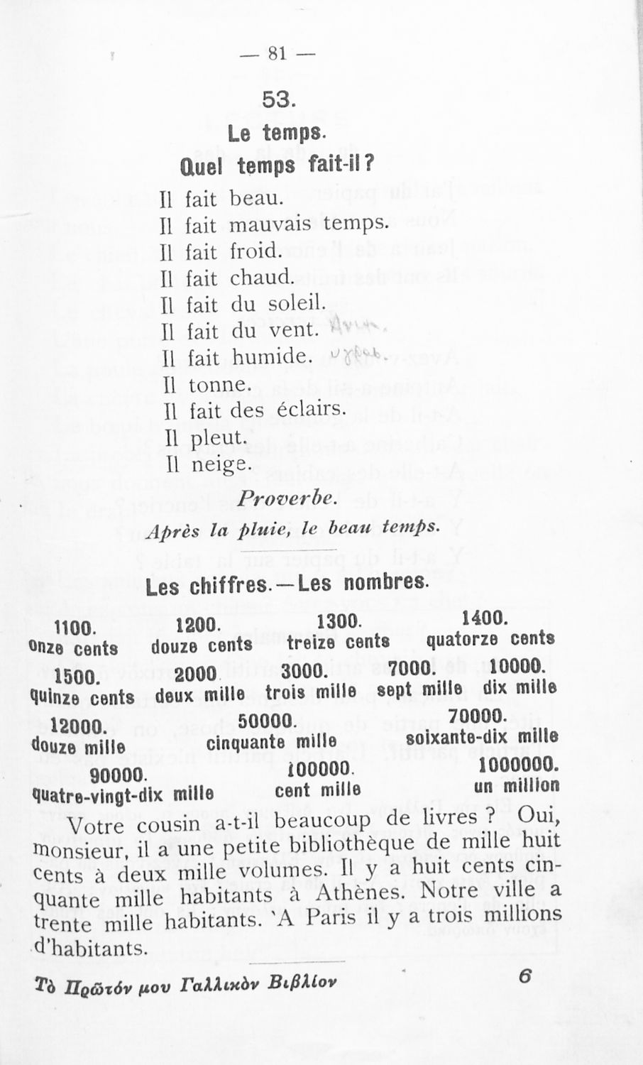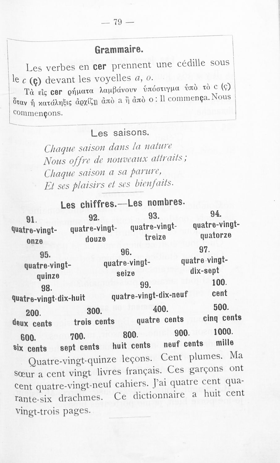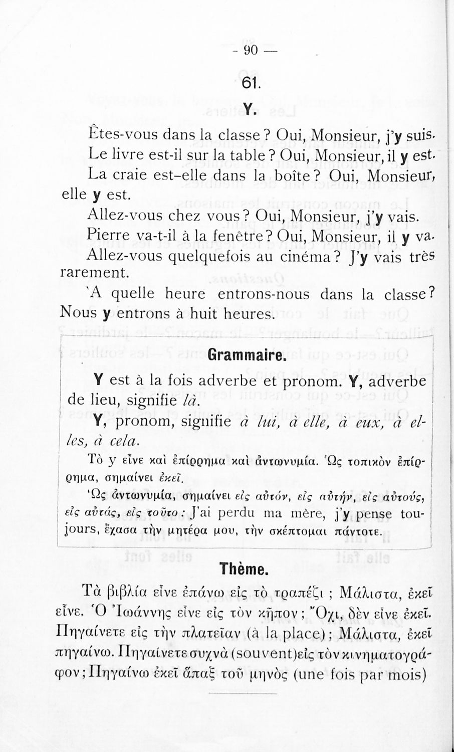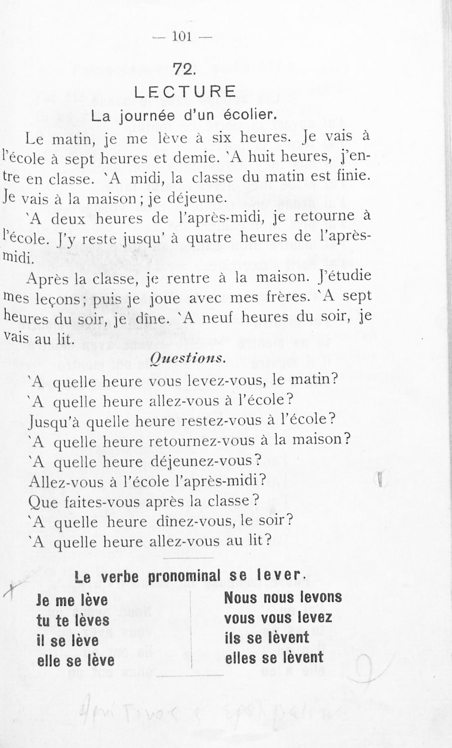 Σχολικό εγχειρίδιο Γαλλικών για τις Εμπορικές Σχολές που περιέχει τους βασικούς κανόνες γραμματικής, συντακτικού και λεξιλογίου, κείμενα που αντλούν τα θέματά τους από την ύπαιθρο και την οικογενειακή και κοινωνική ζωή και κατάλογο λεξιλογίου.