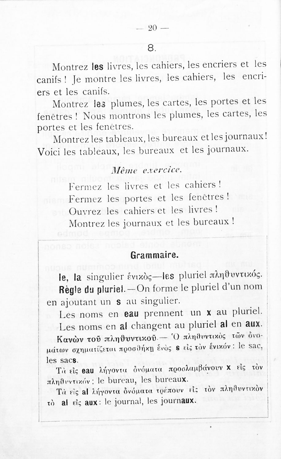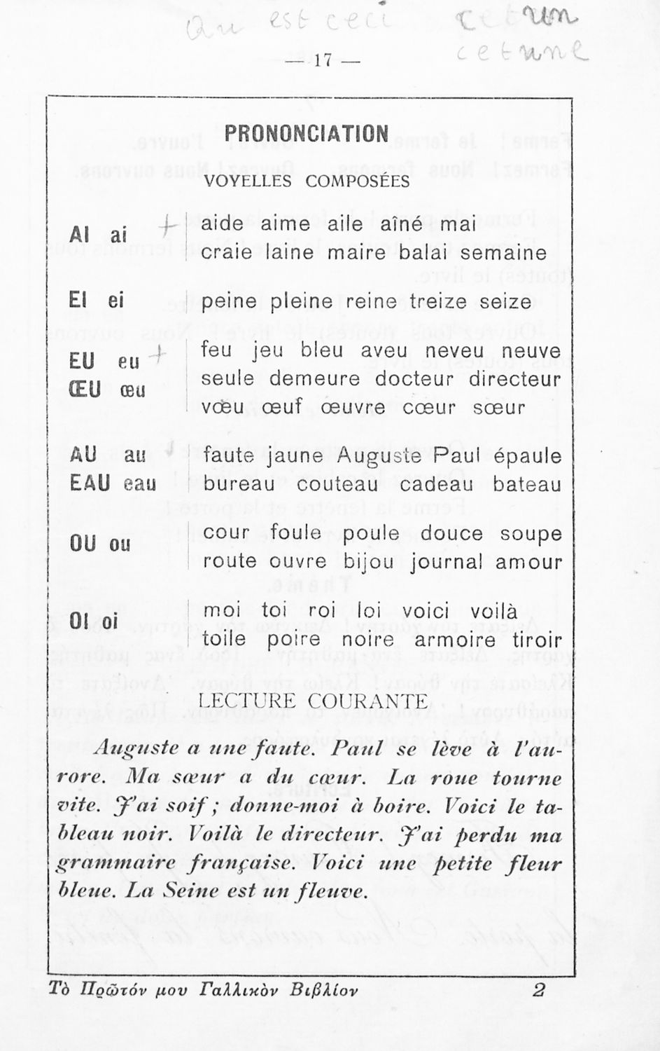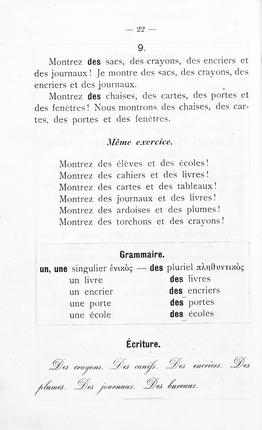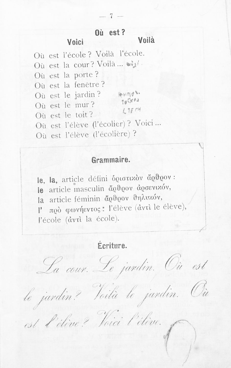 Σχολικό εγχειρίδιο Γαλλικών για τοΕλληνικό Σχολείο, το Αστικό Σχολείο, το Παρθεναγωγείο, το Διδασκαλείο και τις Εμπορικές Σχολές που αποτελείται από κείμενα, γραμματική και συντακτικό της γαλλικής γλώσσας και ...