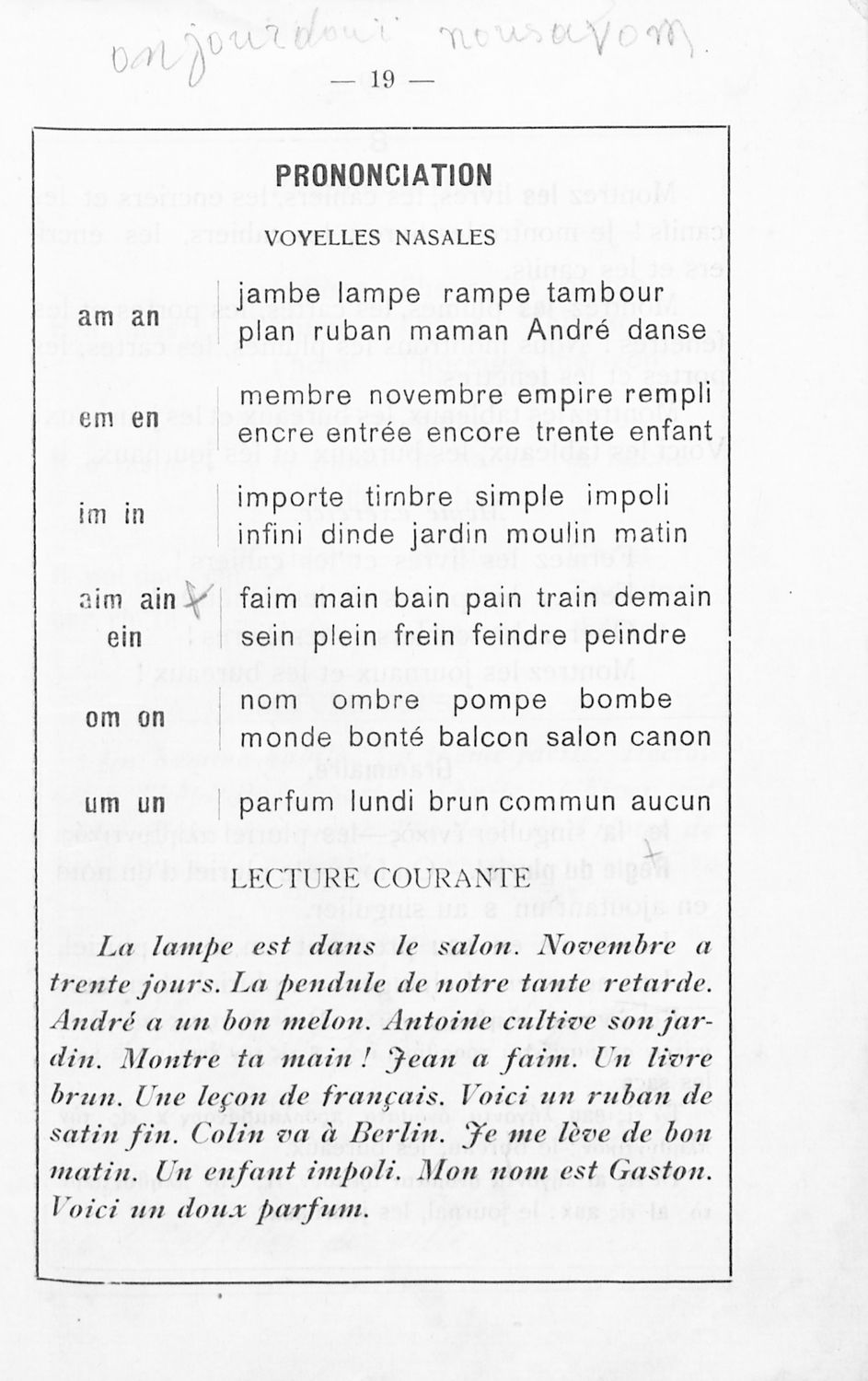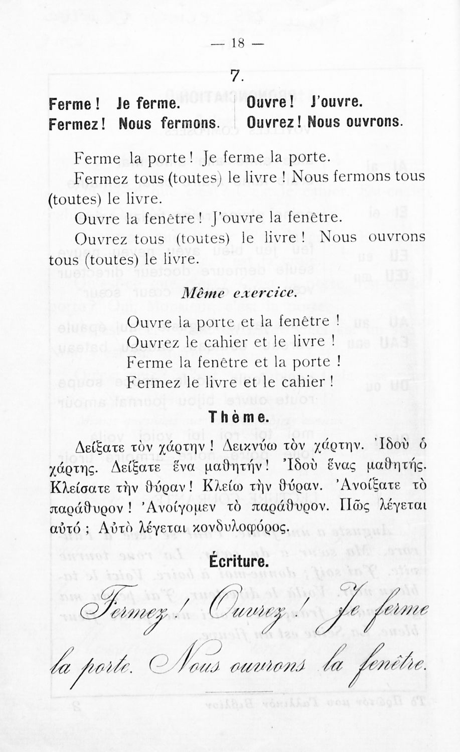 Σχολικό εγχειρίδιο Γαλλικών για τις Εμπορικές Σχολές που περιέχει τους βασικούς κανόνες γραμματικής, συντακτικού και λεξιλογίου, κείμενα που αντλούν τα θέματά τους από την ύπαιθρο και την οικογενειακή και κοινωνική ζωή και κατάλογο λεξιλογίου.