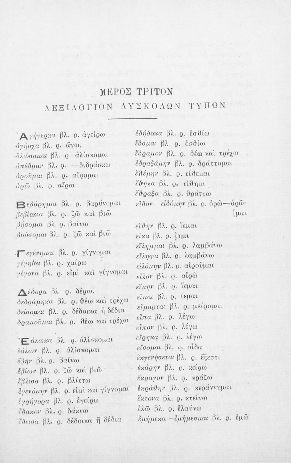Μαθητικό βοήθημα Αρχαίων Ελληνικών για τα Γυμνάσια, Παρθεναγωγεία και Ελληνικά σχολεία το οποίο περιέχει κατάλογο ανωμάλων ρημάτων της Αττικής διαλέκτου.