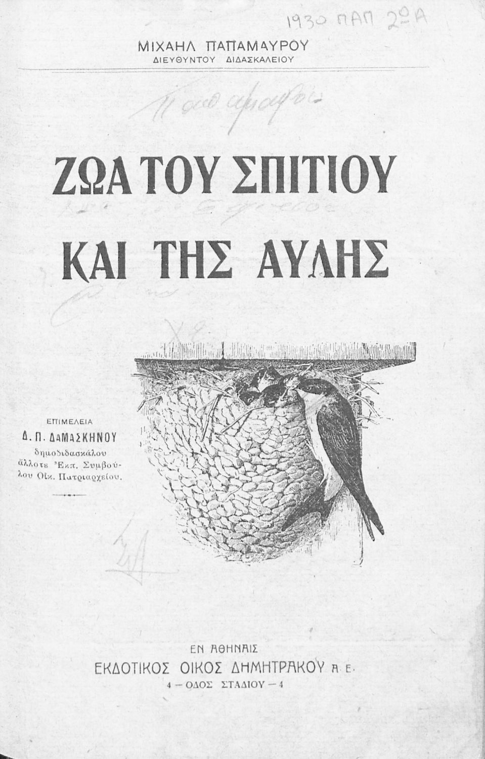 Εντοπισμός πρωτοτύπου: Ελληνικό Λογοτεχνικό και Ιστορικό Αρχείο Κωδικός βιβλιοθήκης: 1930 ΠΑΠ ΖΩΑ |