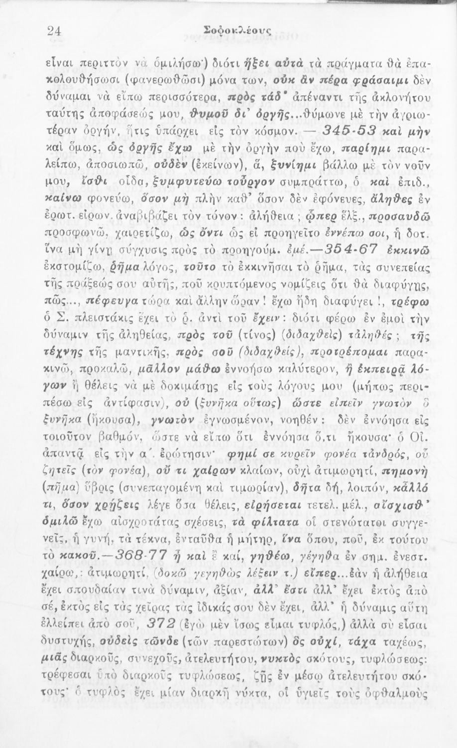 Τίτλος: Σοφοκλέους Οιδίπους Τύραννος, σχόλια