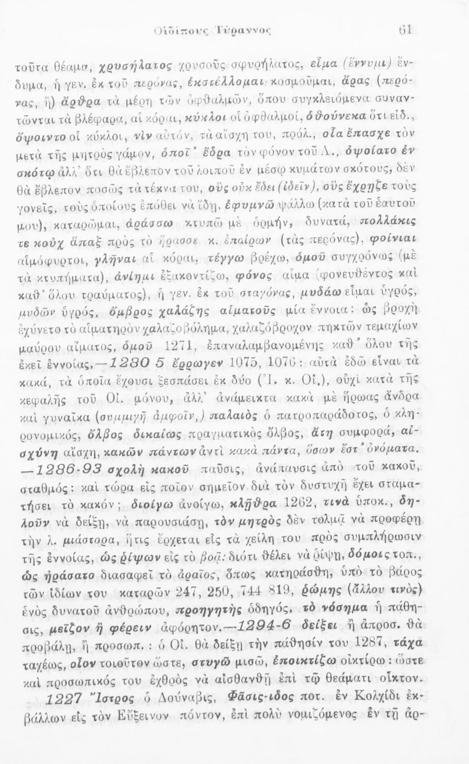 Μαθητικό βοήθημα Αρχαίων Ελληνικών με γλωσσικά και ερμηνευτικά σχόλια πάνω στο έργο του Σοφοκλή, Οιδίπους Τύραννος.
