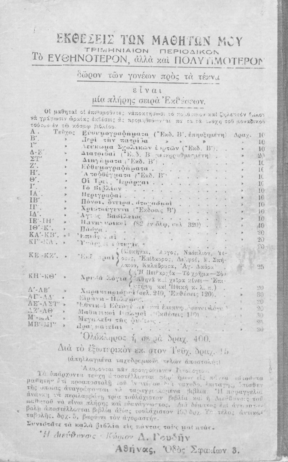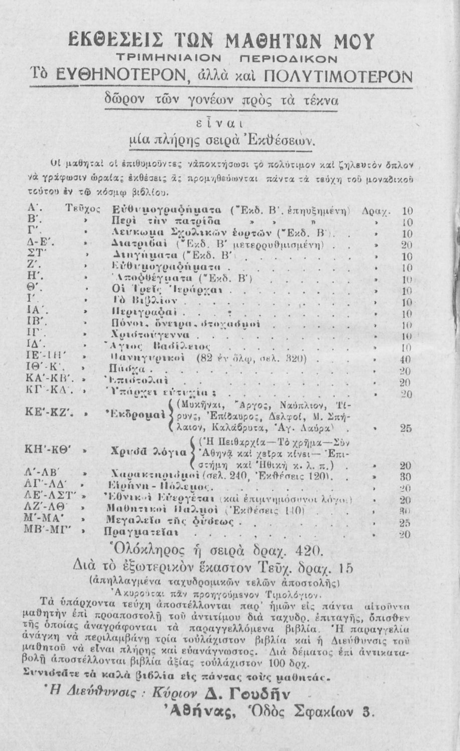 Εκδότης: Π. Δ. Κυριακού Έτος έκδοσης: 1930 Τόπος έκδοσης: Αθήνα Έκδοση: 5η |
