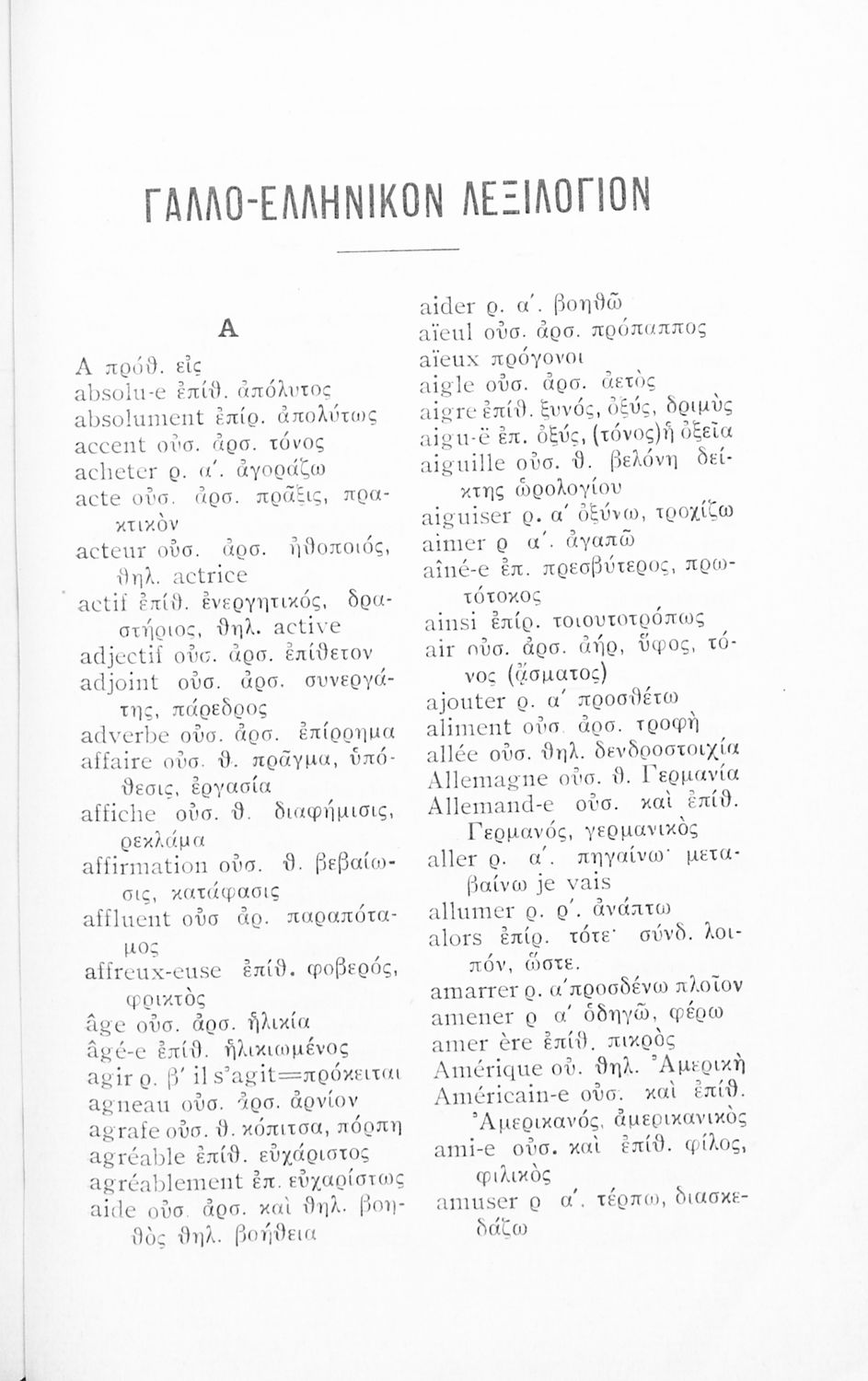 Μαθητικό βοήθημα Γαλλικών των Ελληνικών Σχολείων και Γυμνασίων που περιέχει τους γραμματικούς κανόνες της Γαλλικής γλώσσας.