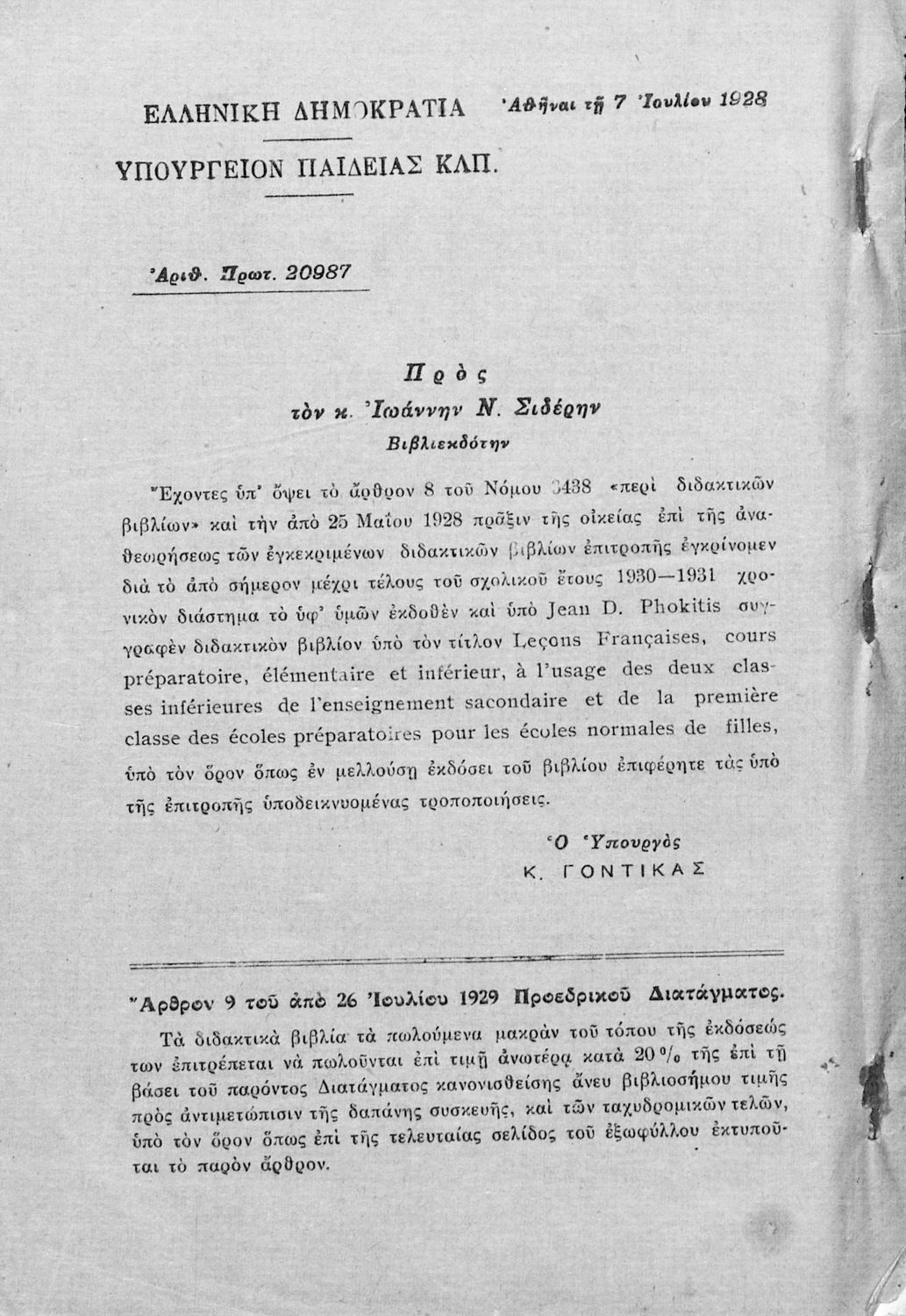 Υπουργική απόφαση / Σύμβαση: 20987/7-7-1928