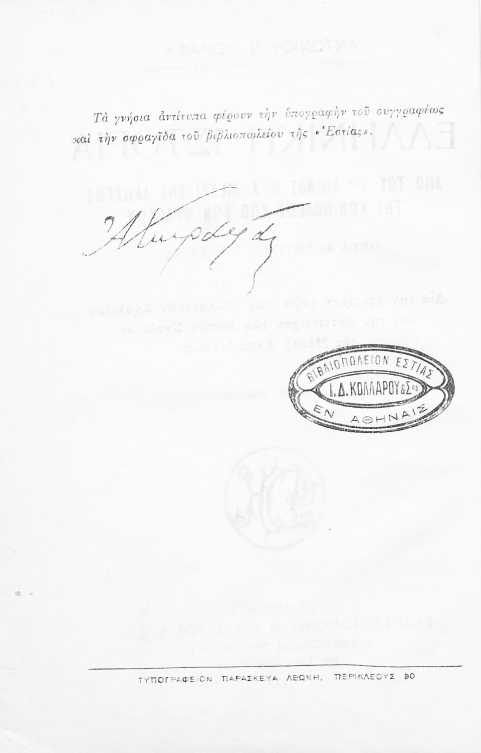 Εντοπισμός πρωτοτύπου: Ελληνικό Λογοτεχνικό και Ιστορικό Αρχείο Κωδικός βιβλιοθήκης: 1930 ΧΩΡ ΕΛΛ |