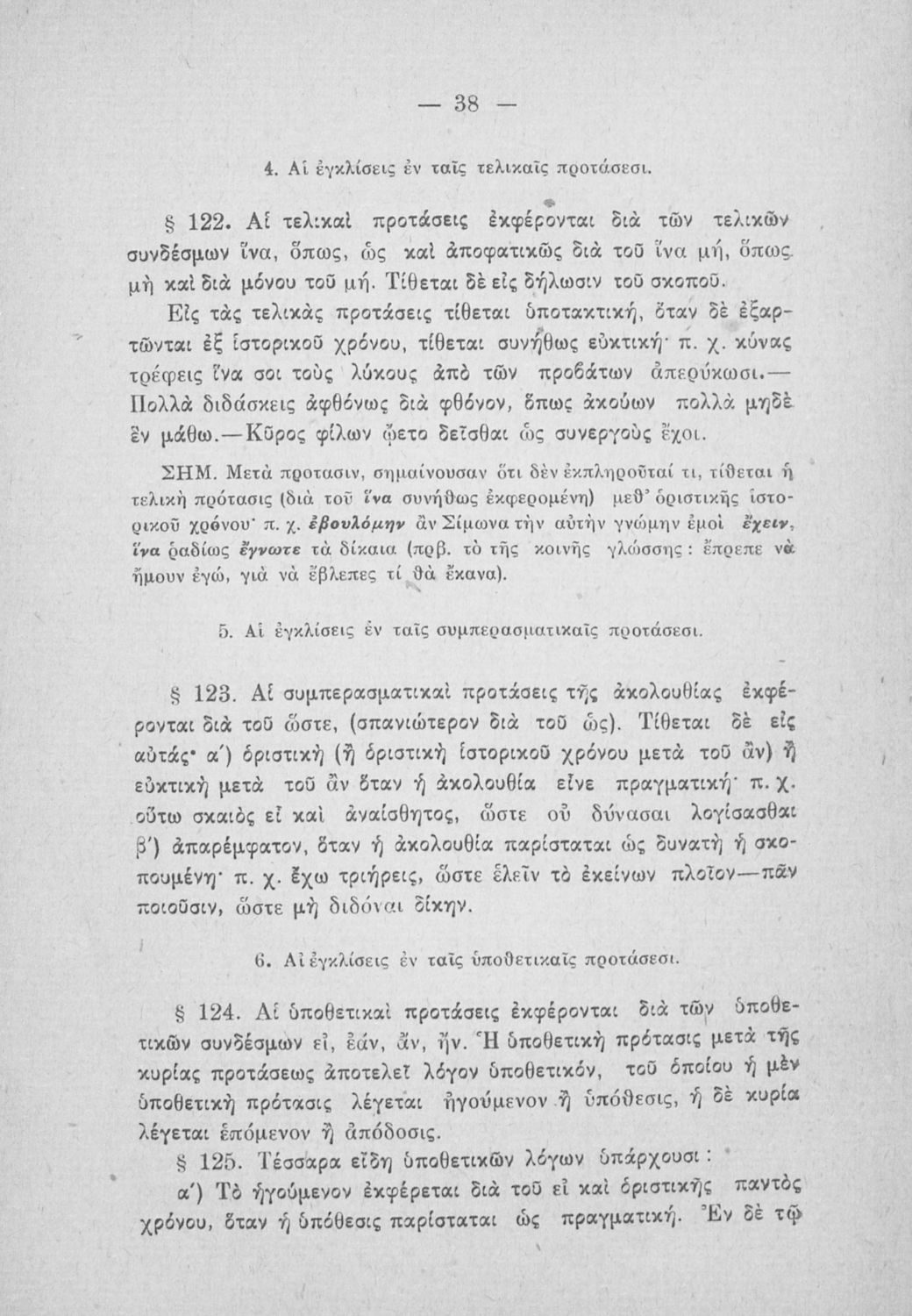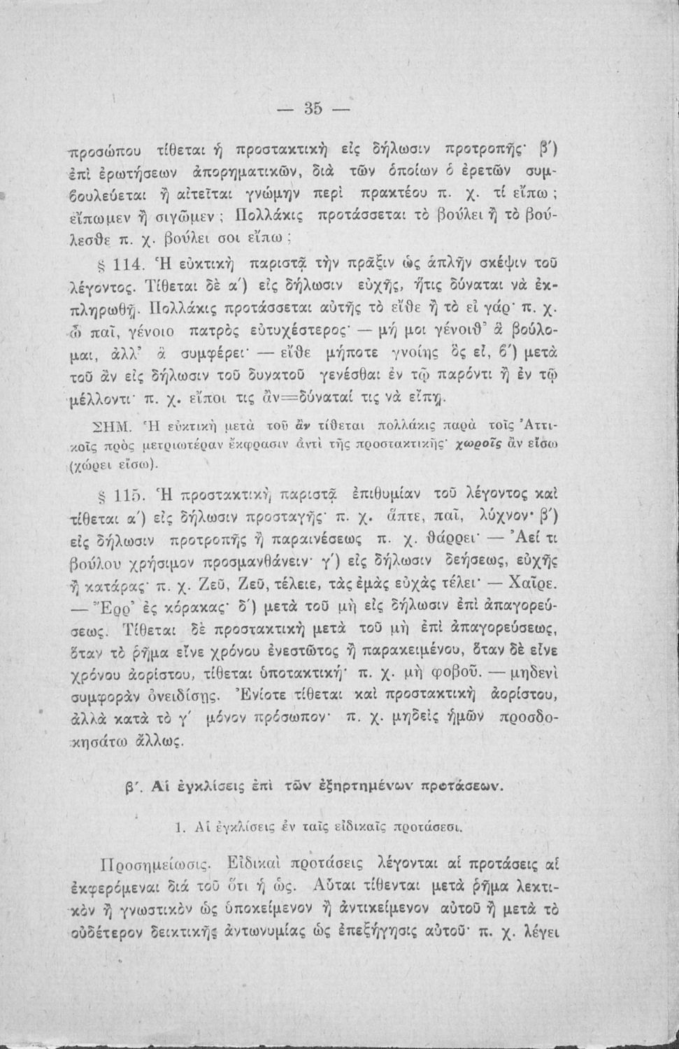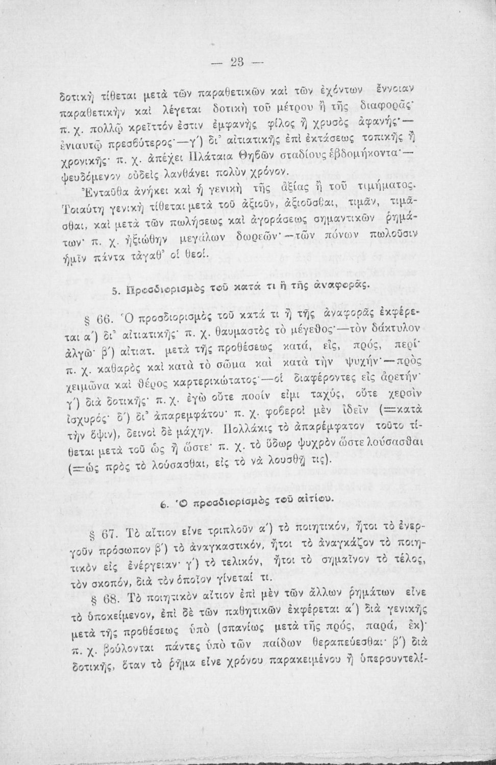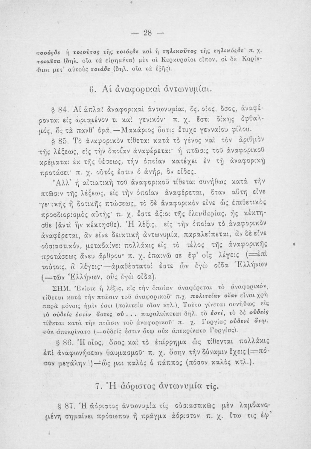 Σχολικό εγχειρίδιο Αρχαίων Ελληνικών για τα Ελληνικά Σχολεία και τα Ανώτερα Παρθεναγωγεία που εξετάζει τα μέρη του λόγου και την σύνταξή τους.