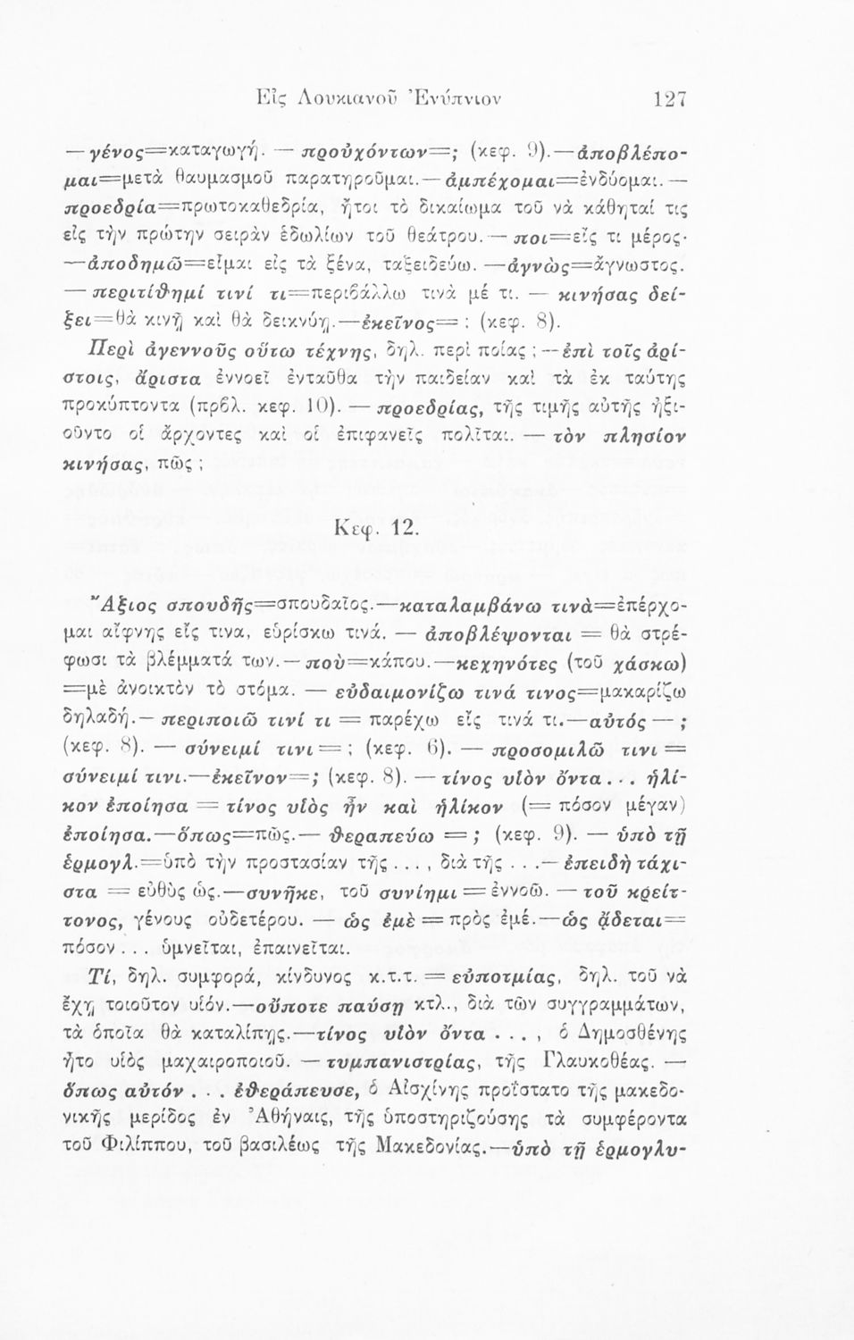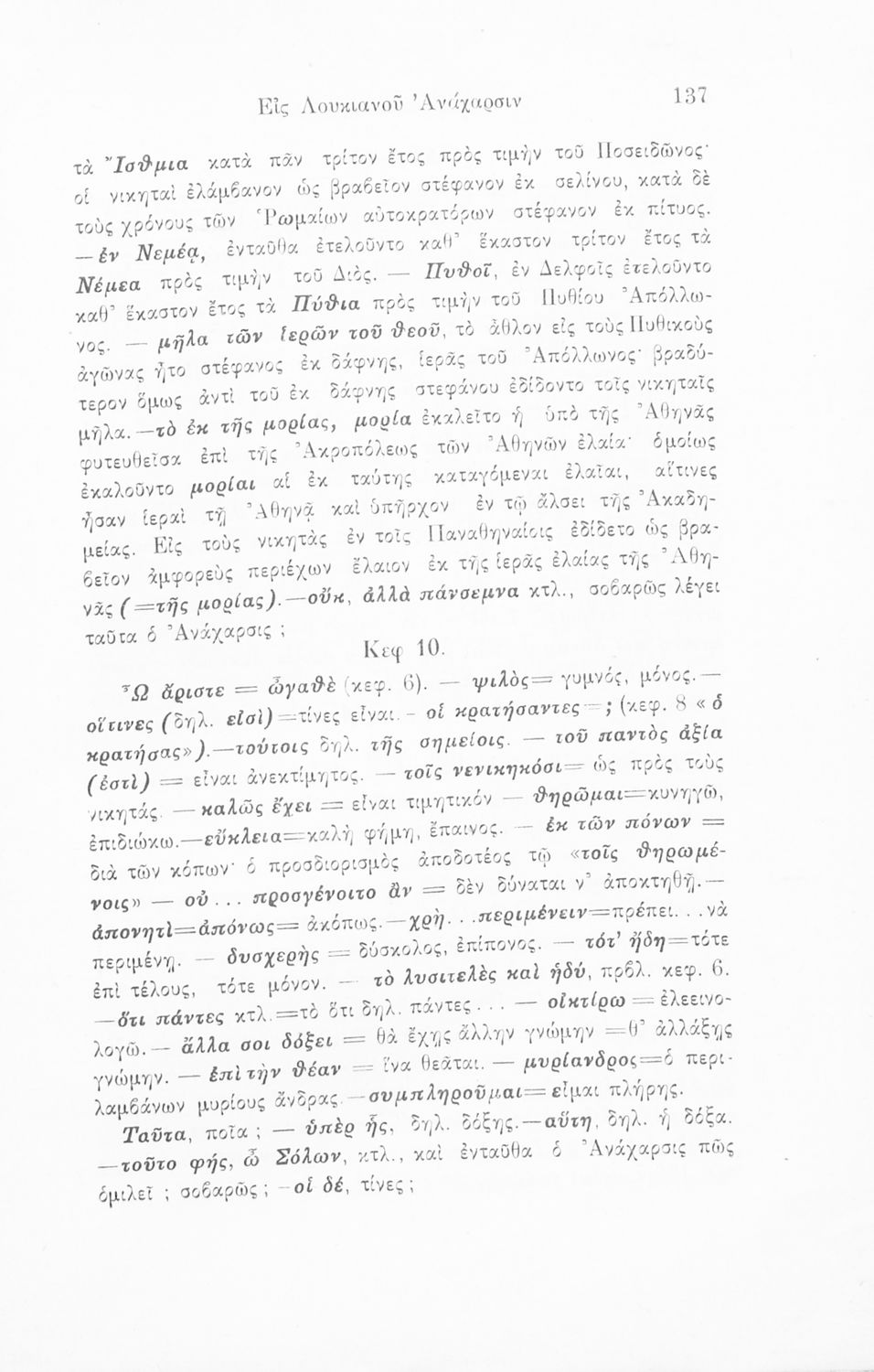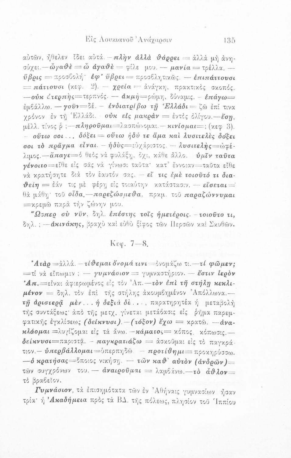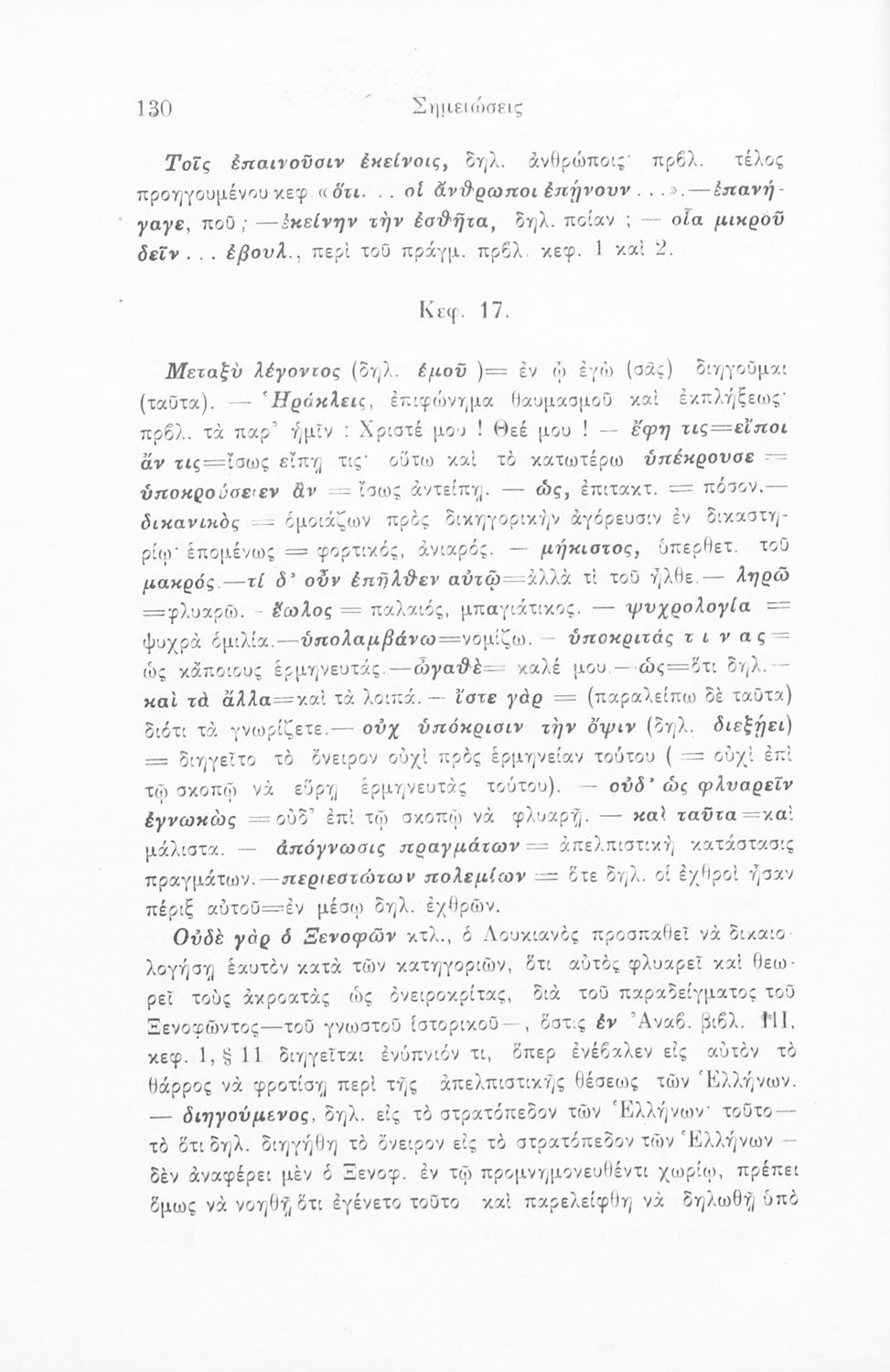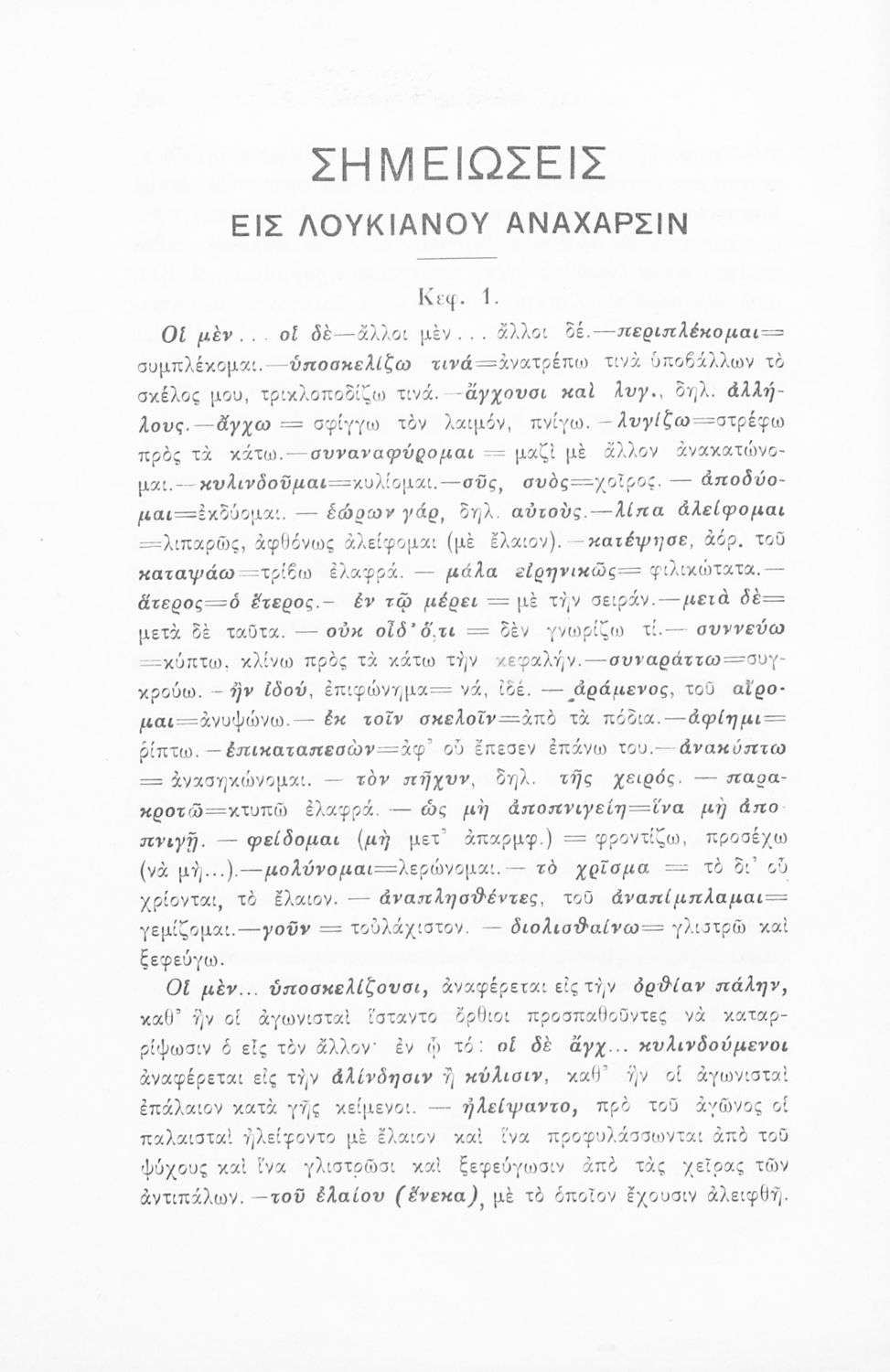 Σχολικό εγχειρίδιο Αρχαίων Ελληνικών που περιλαμβάνει αποσπάσματα από το έργο του Ξενοφώντα Ελληνικά και τα έργα του Λουκιανού Ενύπνιον και Ανάχαρσις, βιογραφικά σημειώματα των συγγραφέων, ερμηνευτικές και πραγματολογικές σημειώσεις και πίνακα των κυριοτέρων ονομάτων.