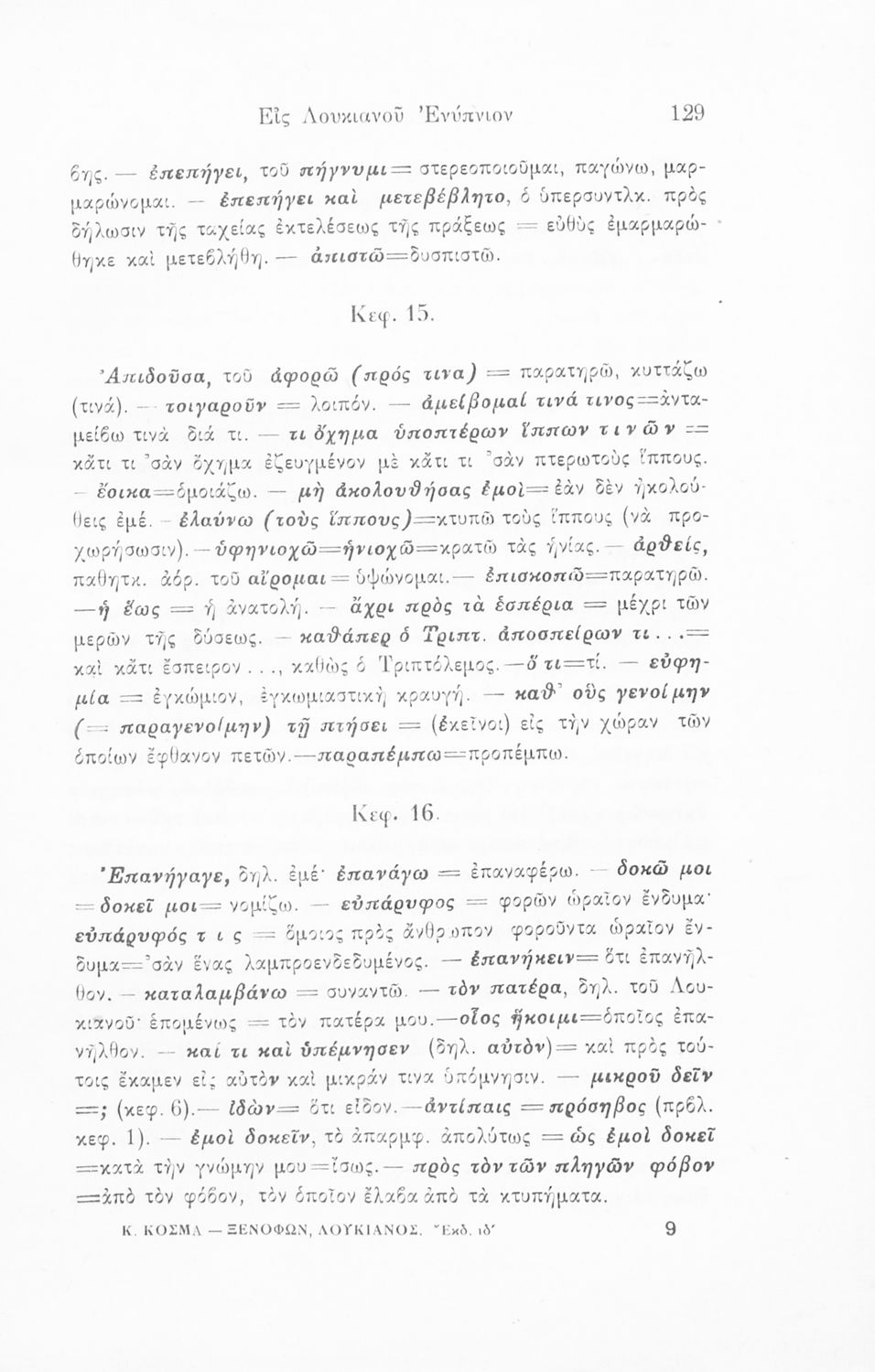 Ξενοφών, Λουκιανός, Κυριάκος Κοσμάς (σχόλια)
