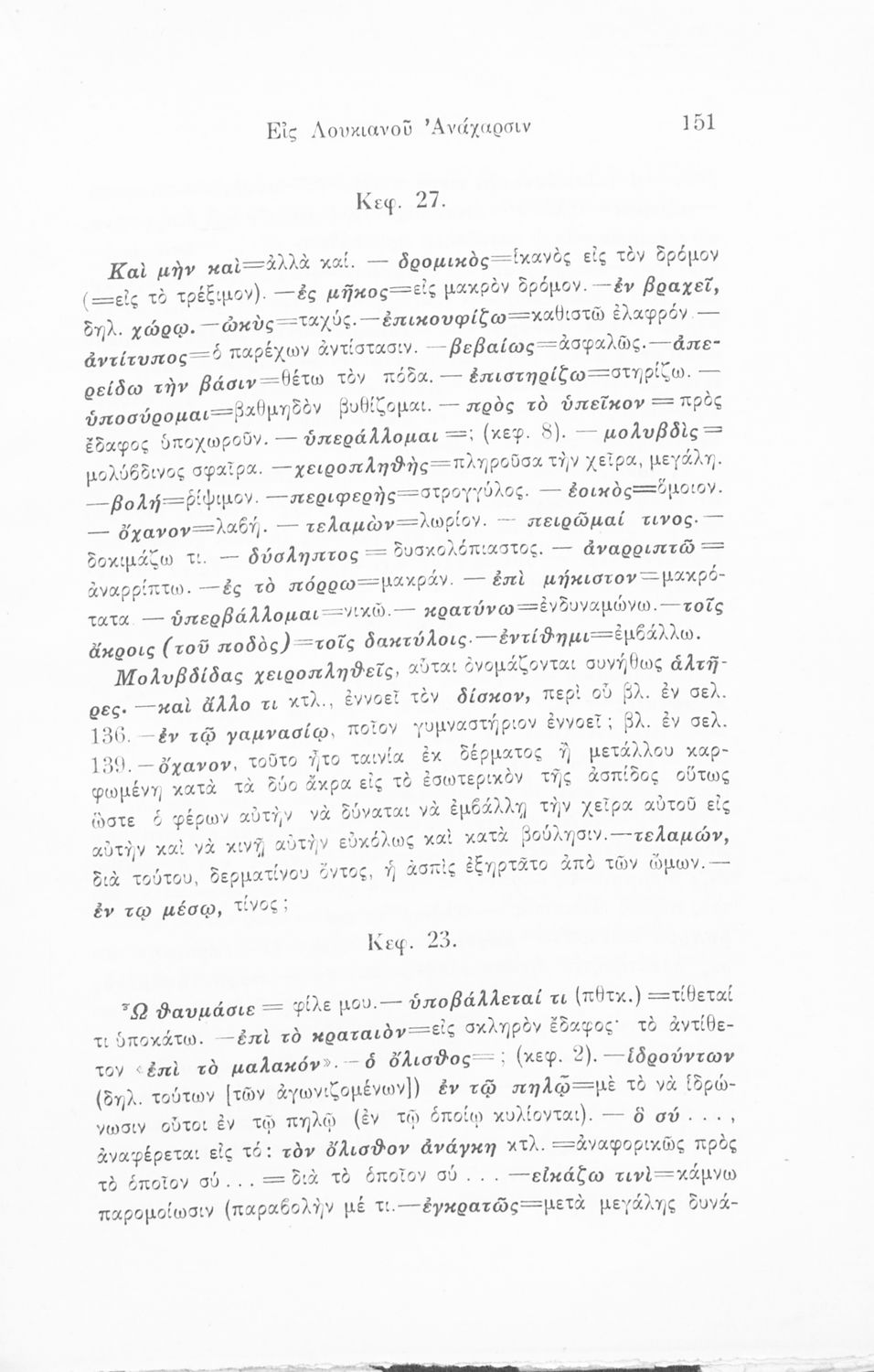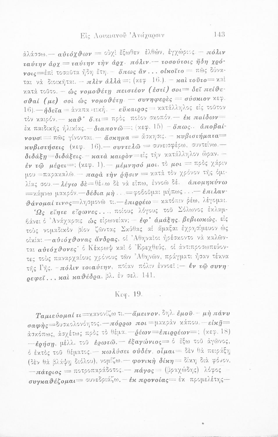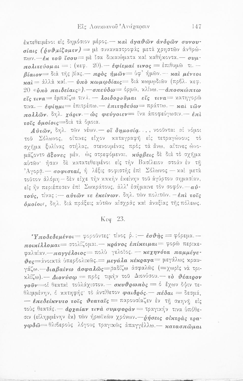 Σχολικό εγχειρίδιο Αρχαίων Ελληνικών που περιλαμβάνει αποσπάσματα από το έργο του Ξενοφώντα Ελληνικά και τα έργα του Λουκιανού Ενύπνιον και Ανάχαρσις, βιογραφικά σημειώματα των συγγραφέων, ερμηνευτικές και πραγματολογικές σημειώσεις και πίνακα των κυριοτέρων ονομάτων.