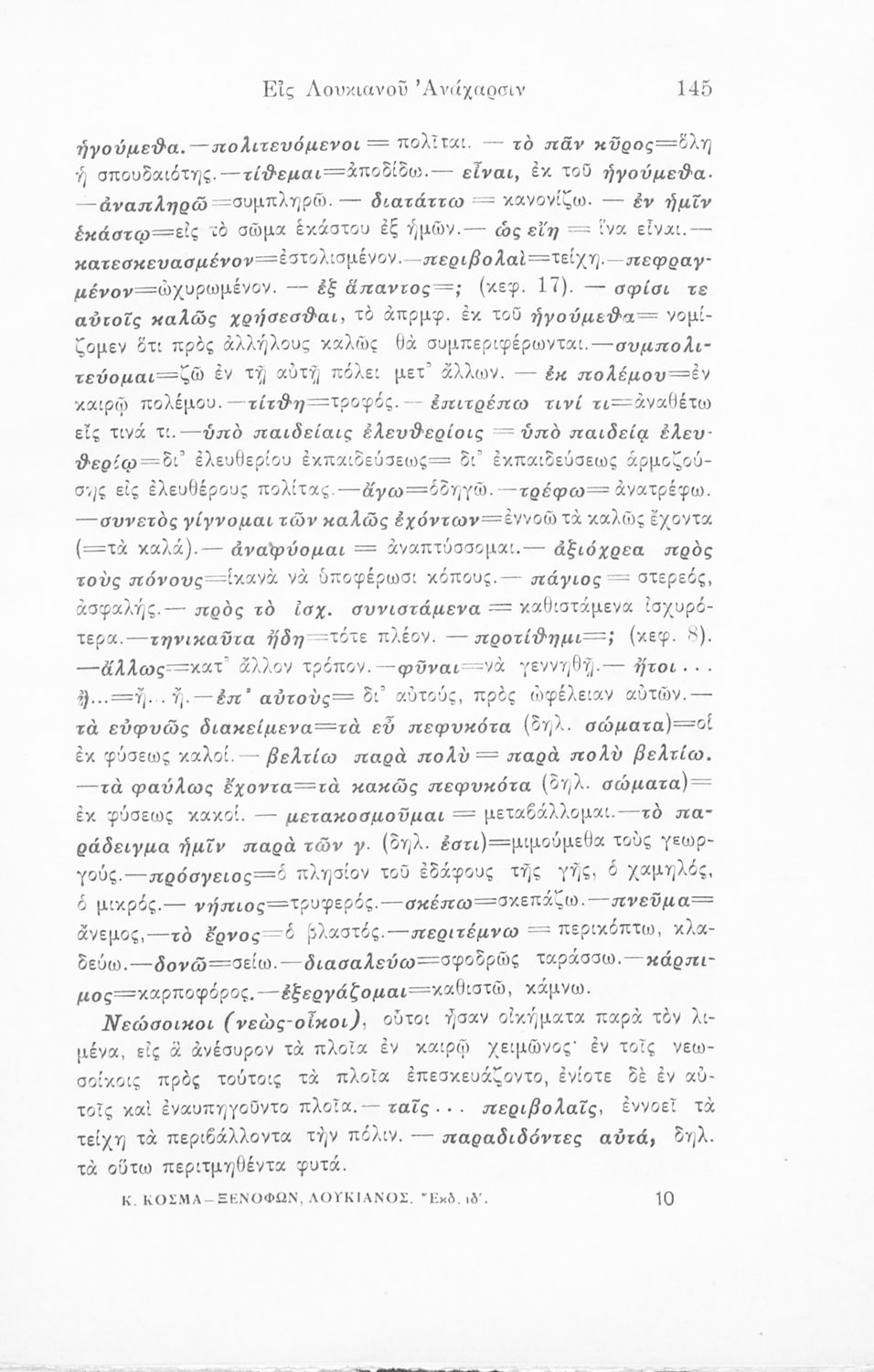Ξενοφών, Λουκιανός, Κυριάκος Κοσμάς (σχόλια)