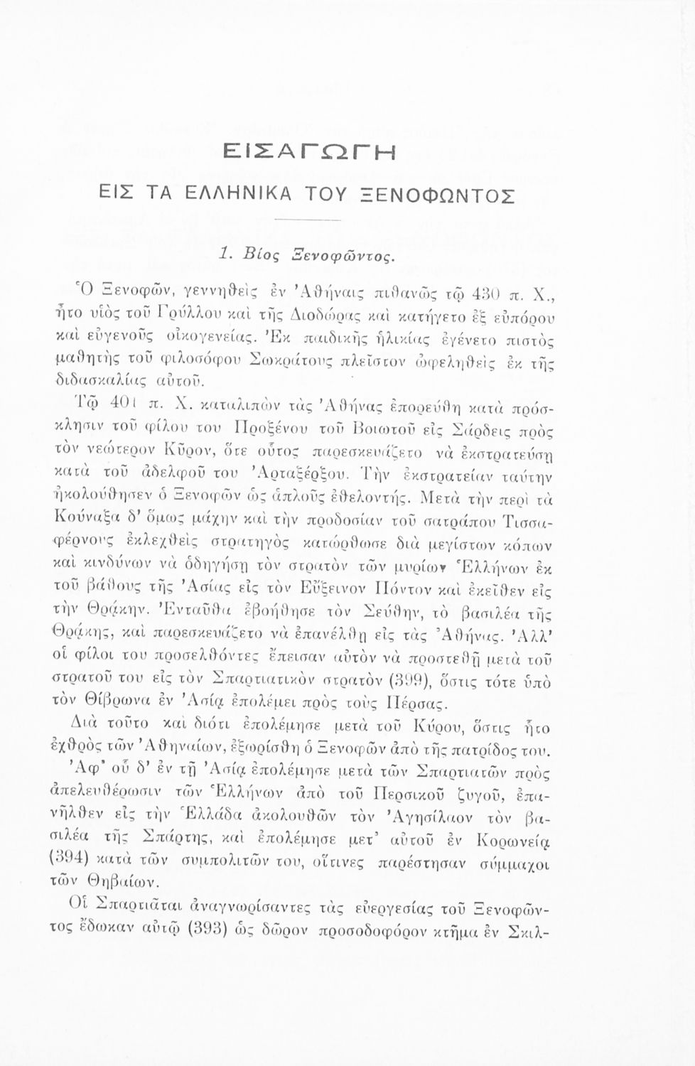 Σχολικό εγχειρίδιο Αρχαίων Ελληνικών για τις Γ΄ Ελληνικών Σχολείων και Α΄ Αστικών Σχολείων Θηλέων που περιλαμβάνει το έργο του Ξενοφώντα Κύρου Ανάβασις, εισαγωγικά σχόλια για τη ζωή και το έργο του, ...