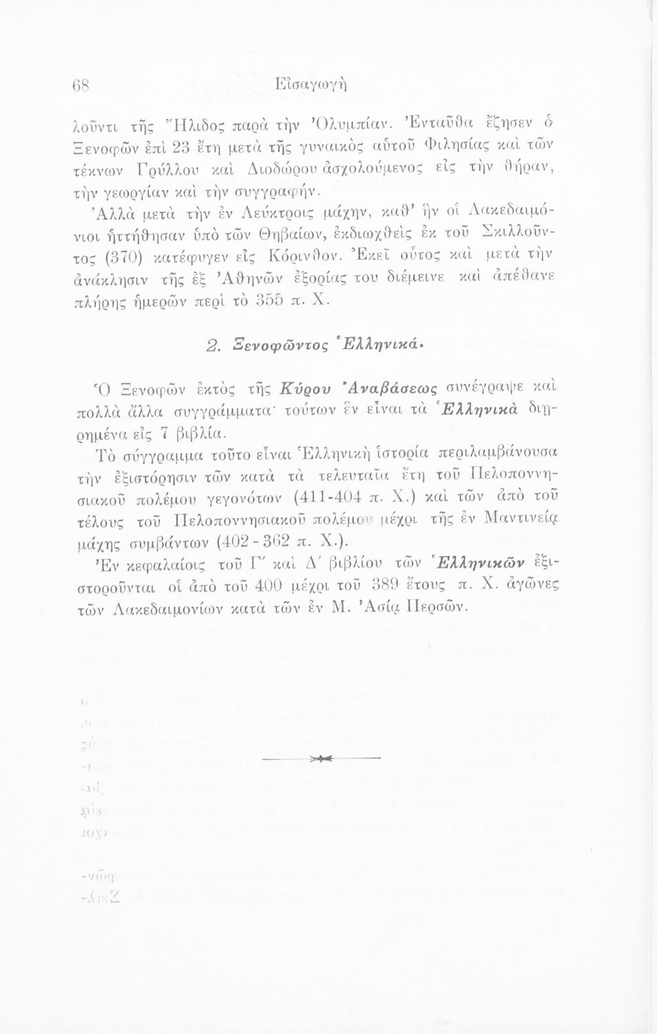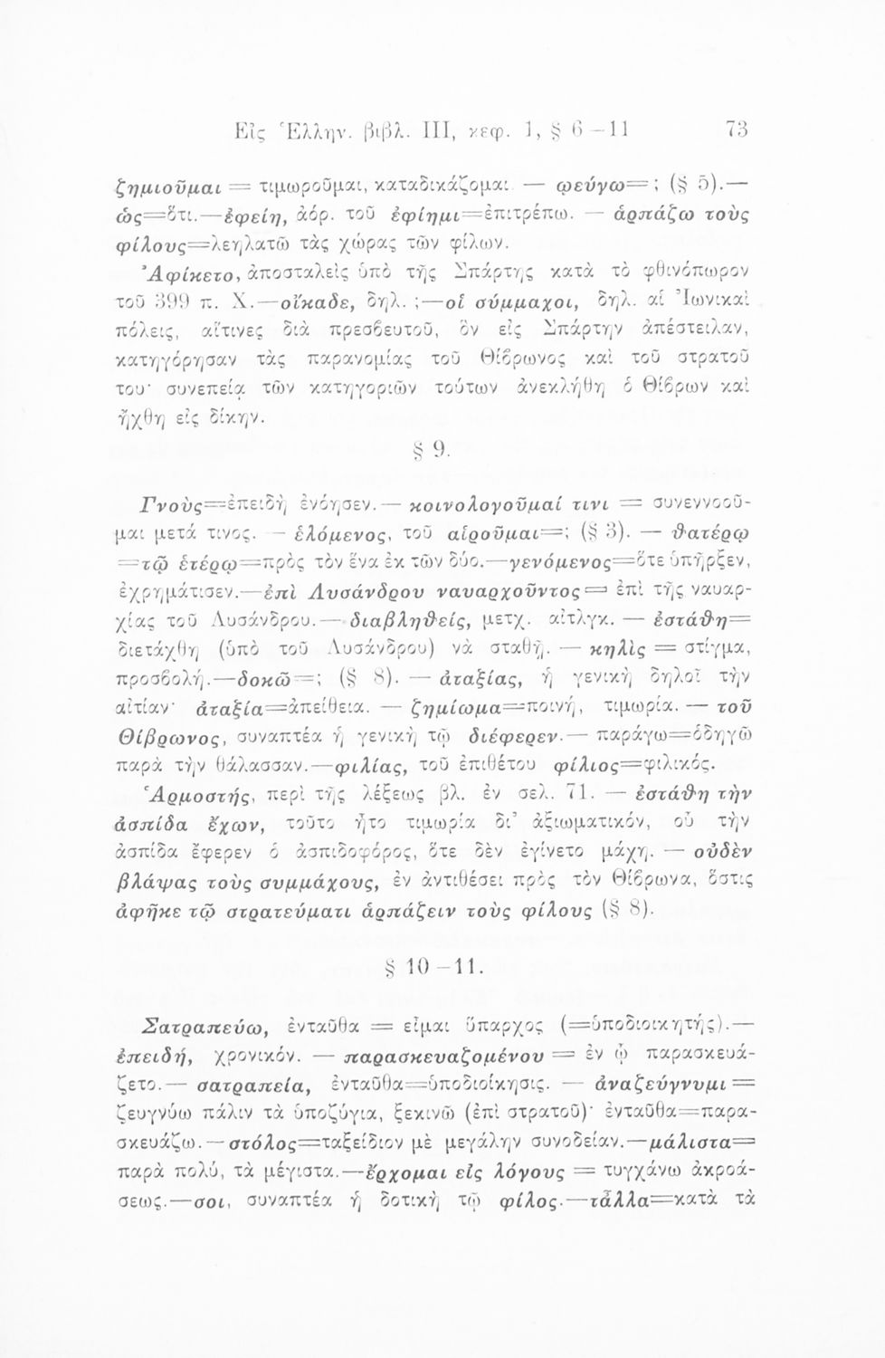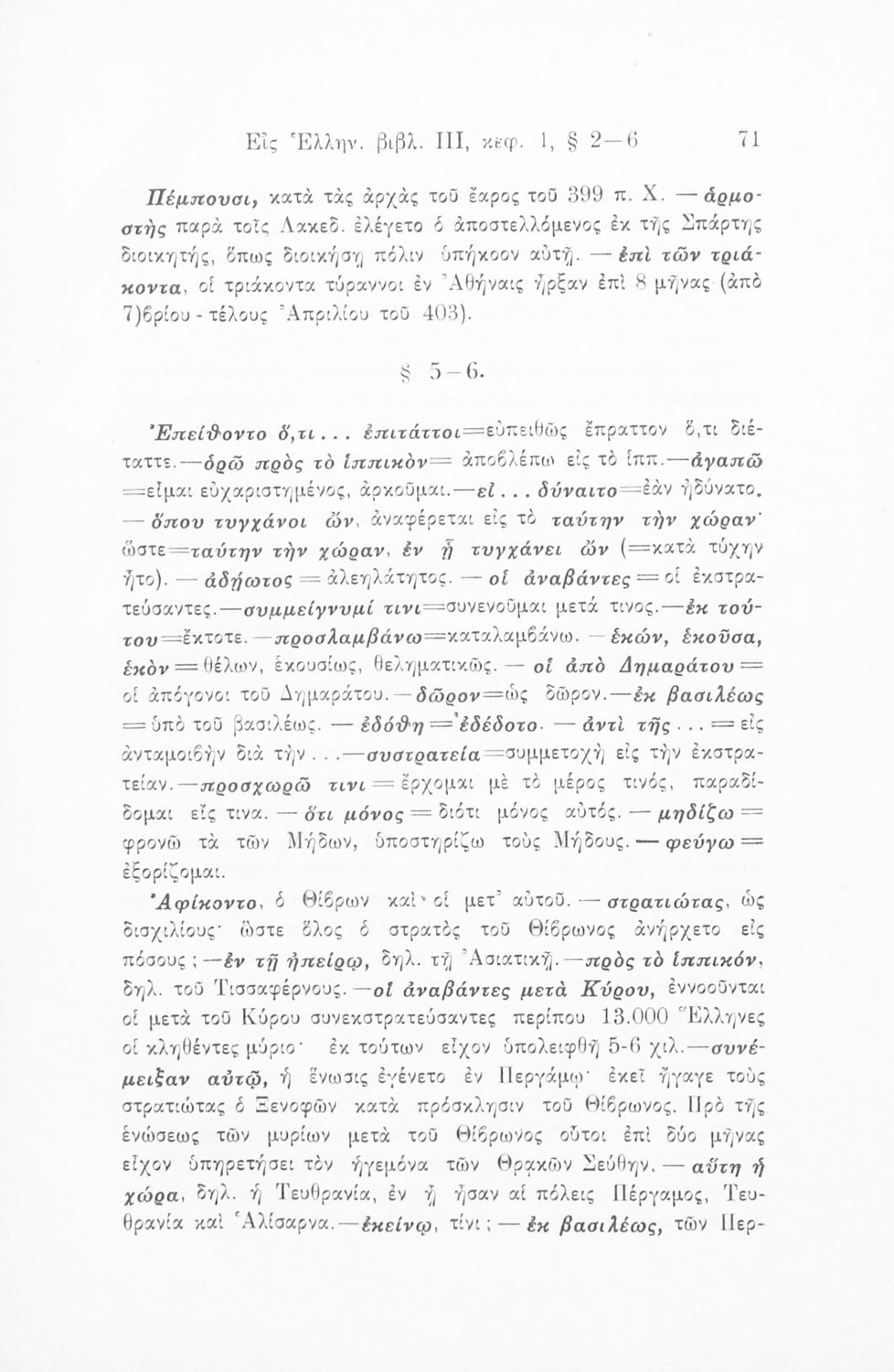 Σχολικό εγχειρίδιο Αρχαίων Ελληνικών που περιλαμβάνει αποσπάσματα από το έργο του Ξενοφώντα Ελληνικά και τα έργα του Λουκιανού Ενύπνιον και Ανάχαρσις, βιογραφικά σημειώματα των συγγραφέων, ερμηνευτικές και πραγματολογικές σημειώσεις και πίνακα των κυριοτέρων ονομάτων.