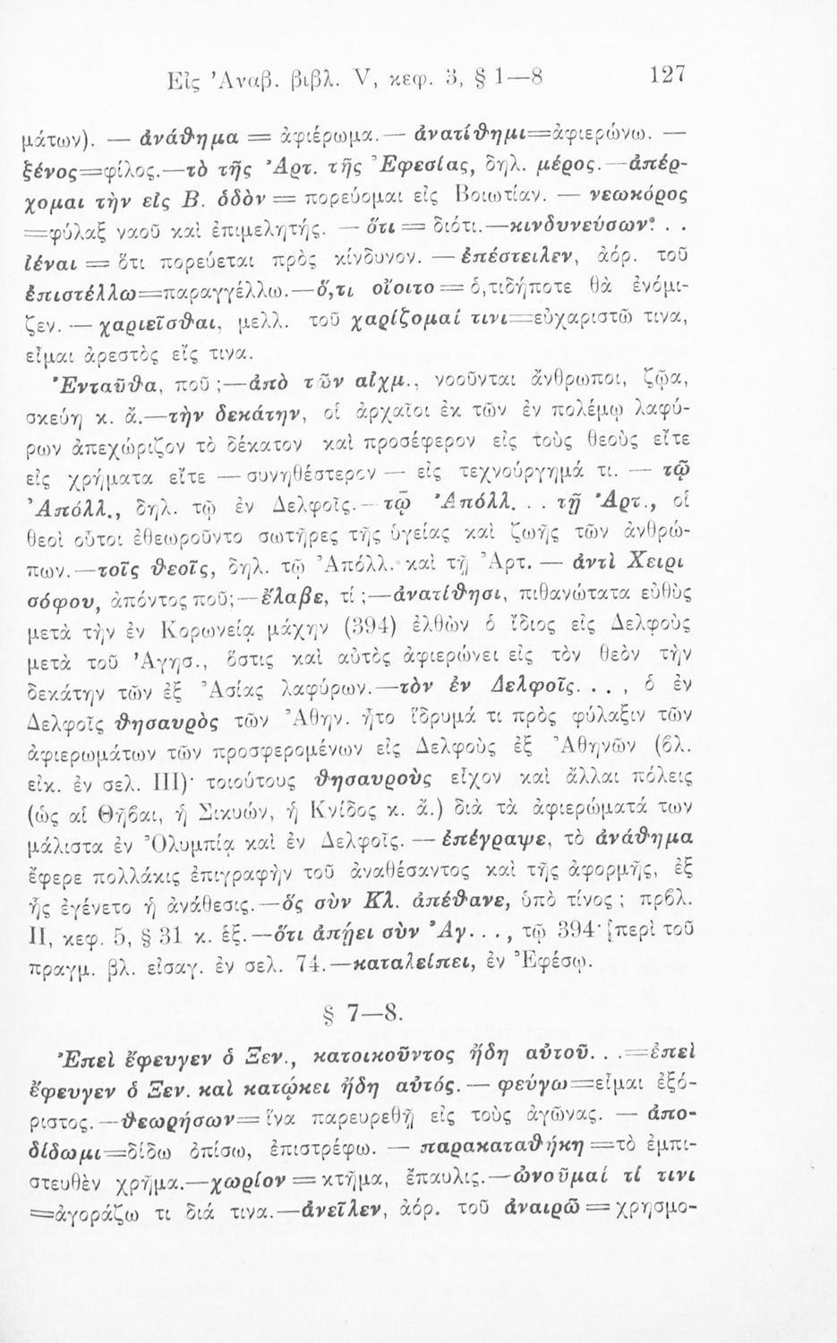 Σχολικό εγχειρίδιο Αρχαίων Ελληνικών για τις Γ΄ Ελληνικών Σχολείων και Α΄ Αστικών Σχολείων των Θηλέων που περιλαμβάνει το έργο του Ξενοφώντα Κύρου Ανάβασις, εισαγωγικά σχόλια για τη ζωή και το έργο του, ερμηνευτικές και γραμματικές παρατηρήσεις.