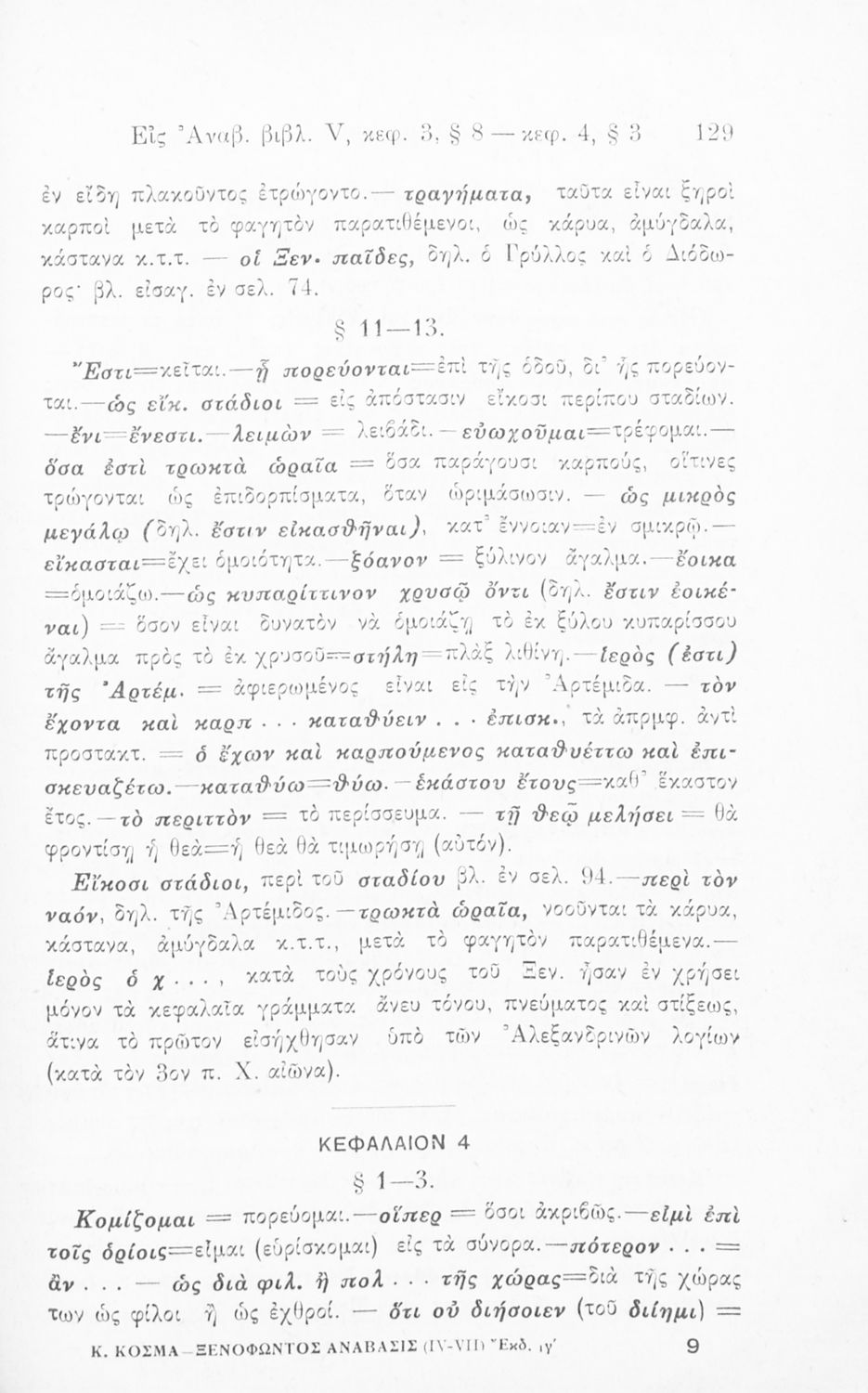 Ξενοφών, Κυριάκος Κοσμάς (σχόλια)