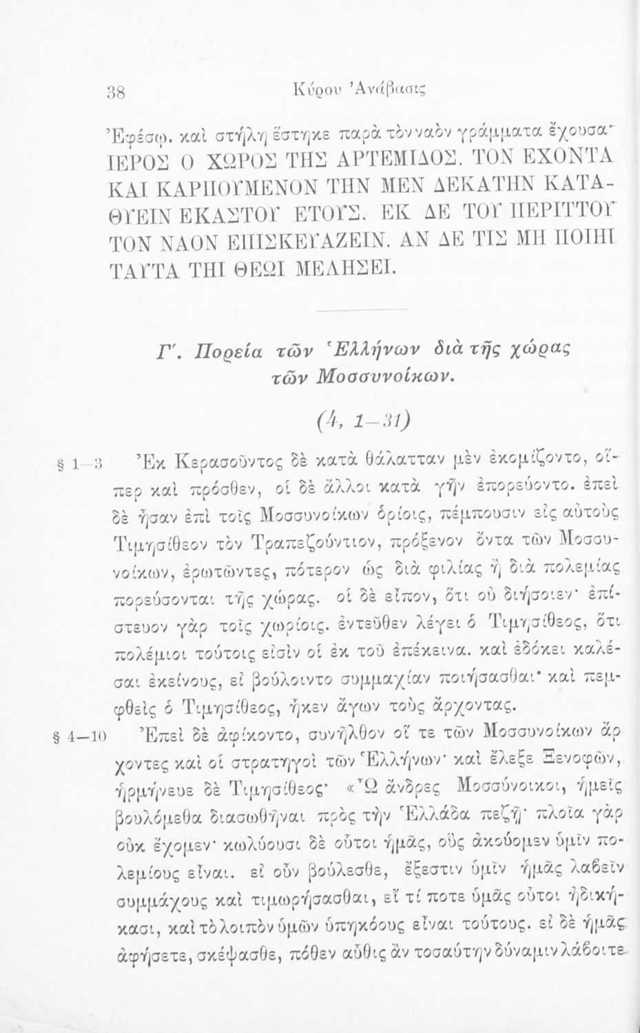 Ξενοφώντος Κύρου Αναβάσεως Τα τέσσερα τελευταία βιβλία κατ΄ εκλογήν εκδοθέντα δια την Γ΄ τάξιν των Ελληνικών Σχολείων και την Α΄ των Αστικών Σχολείων των Θηλέων
