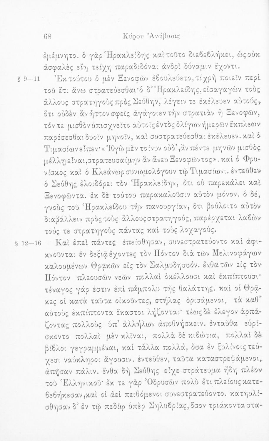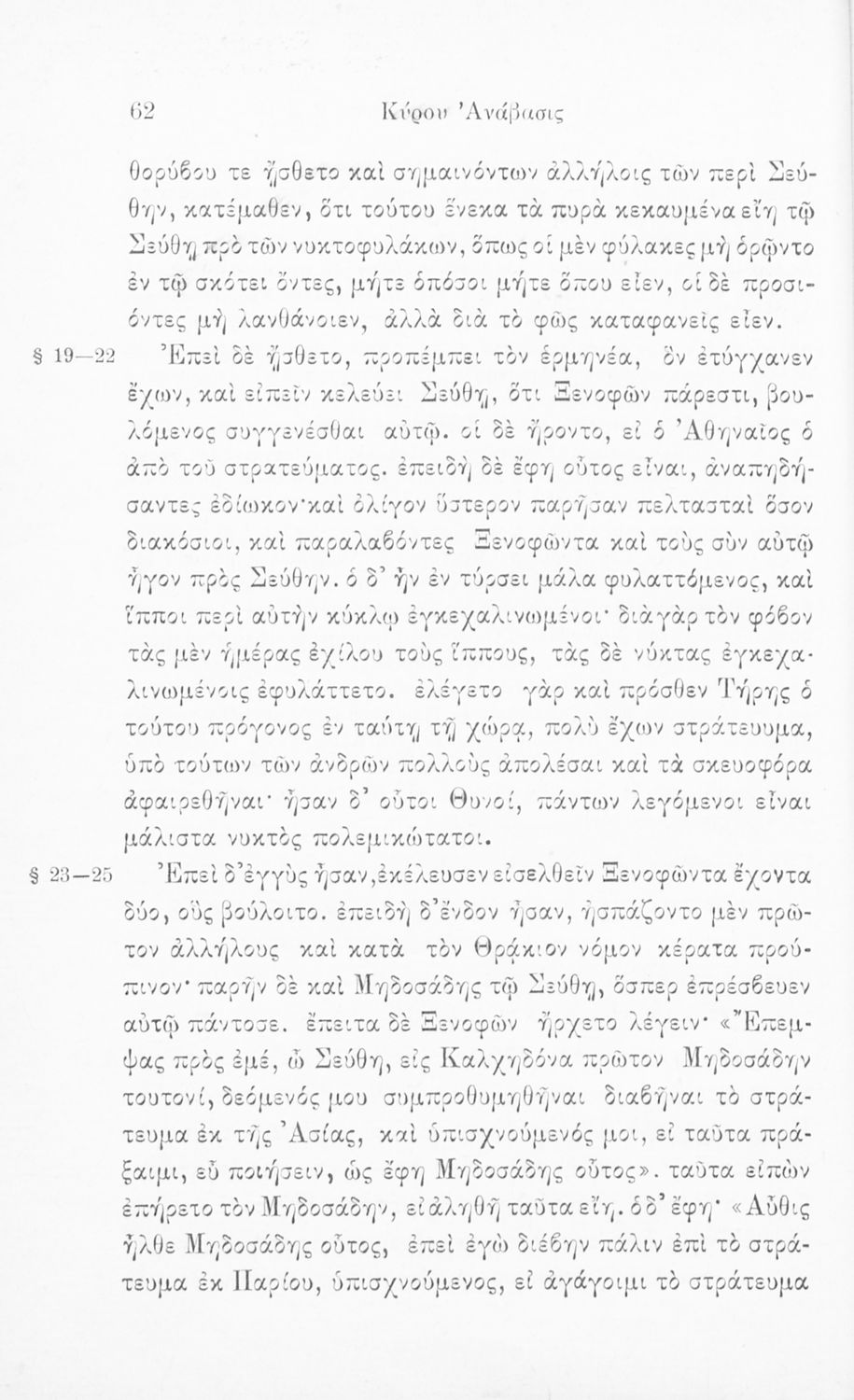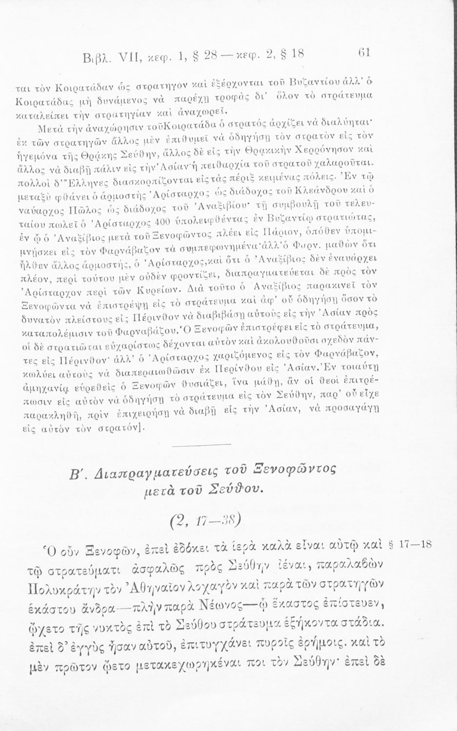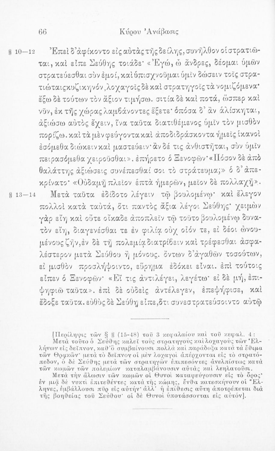 Σχολικό εγχειρίδιο Αρχαίων Ελληνικών για τις Γ΄ Ελληνικών Σχολείων και Α΄ Αστικών Σχολείων των Θηλέων που περιλαμβάνει το έργο του Ξενοφώντα Κύρου Ανάβασις, εισαγωγικά σχόλια για τη ζωή και το έργο του, ερμηνευτικές και γραμματικές παρατηρήσεις.