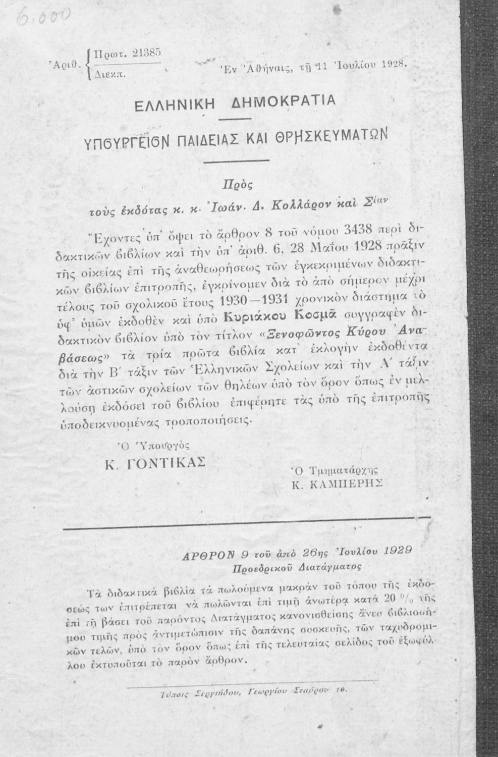 Υπουργική απόφαση / Σύμβαση: 21885/11-7-1925