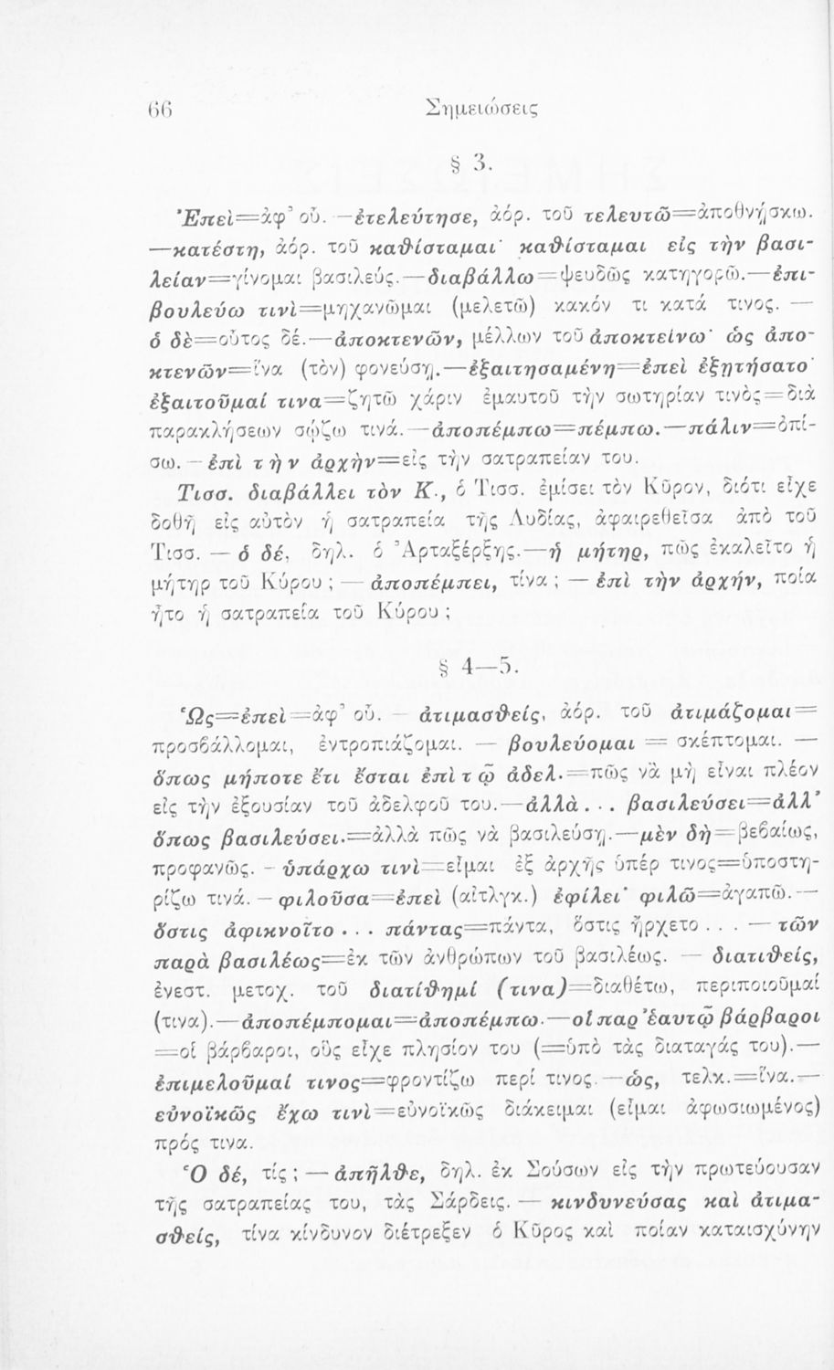 Σχολικό εγχειρίδιο της Γ' Ελληνικού Σχολείου και Αστικών Σχολείων για το μάθημα των Αρχαίων Ελληνικών. Το σύγγραμμα περιλαμβάνει κείμενα κατ΄ επιλογή από τα τέσσερα τελευταία βιβλία του έργου Κύρου Ανάβασις. ...
