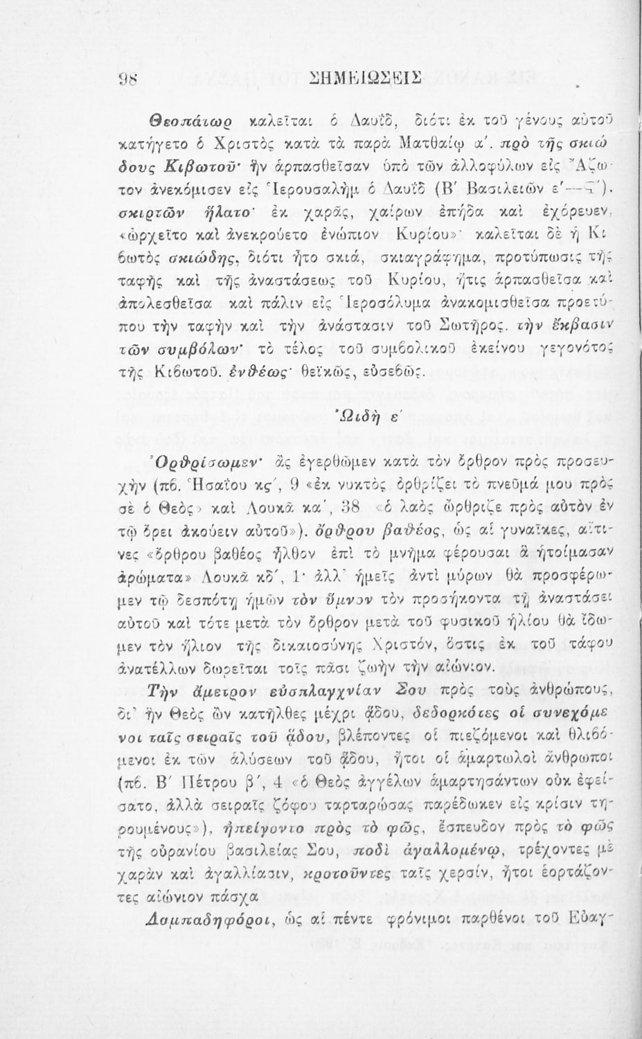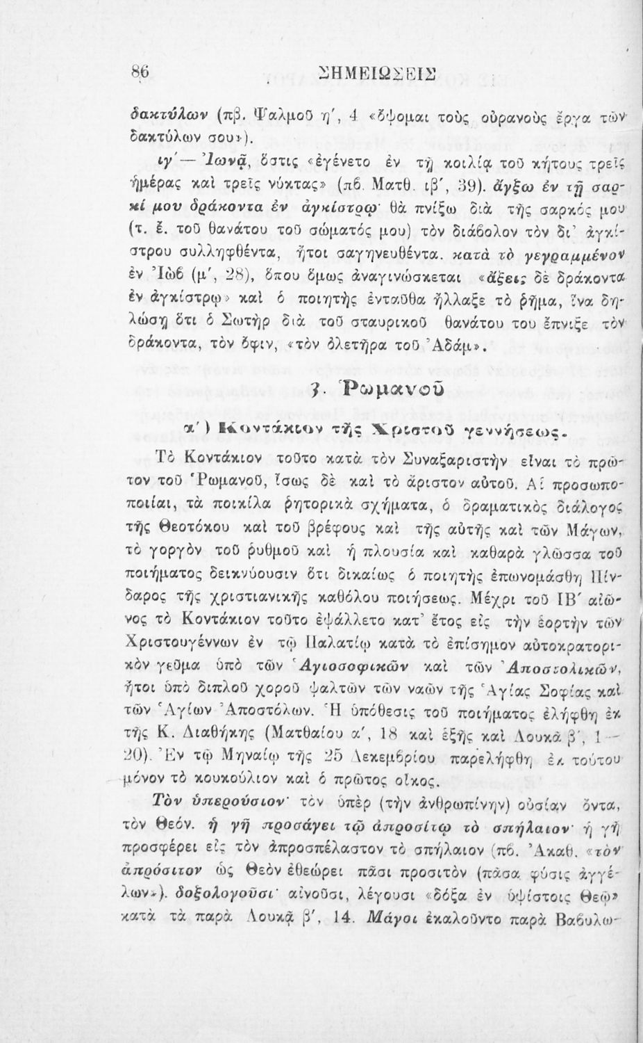 Βαθμίδα εκπαίδευσης: Δευτεροβάθμια Τάξη: Γ' Γυμνασίου Μάθημα: Θρησκευτικά Γλώσσα: Καθαρεύουσα Παρουσίαση περιεχομένου: Σχολικό εγχειρίδιο Θρησκευτικών Γ΄ Γυμνασίου που περιλαμβάνει εισαγωγή στην εκκλησιαστική ποίηση, κοντάκια, κανόνες και ερμηνευτικές σημειώσεις. |